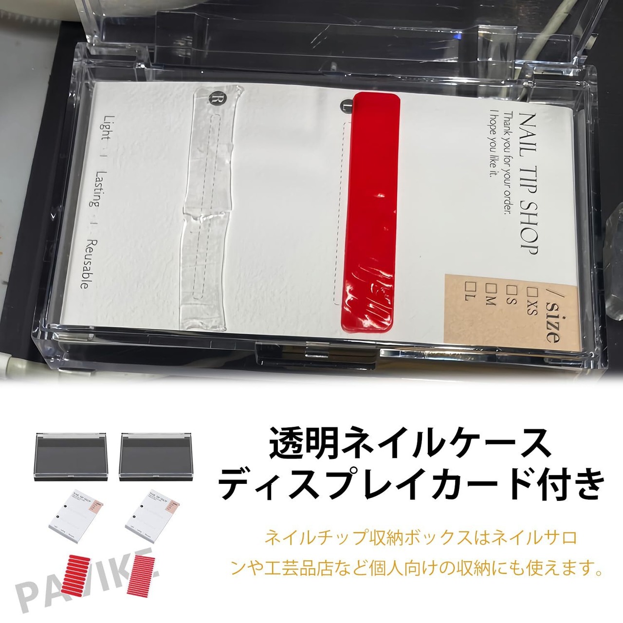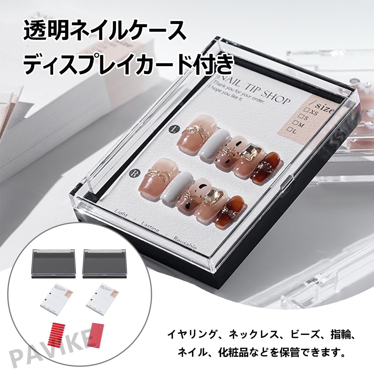 【ネイル収納ケースの特徴】つけ爪収納ケースのフタが透明なので、フタを開けなくても中身が見えます。 このネイルチップ収納ケースはネイルチップケース 台紙付きで、展示の美しさと高級感を引き立てます。また、フタは簡単に開閉でき、取り出しやすく収納しやすいので、アクセサリーの整理収納に最適です。