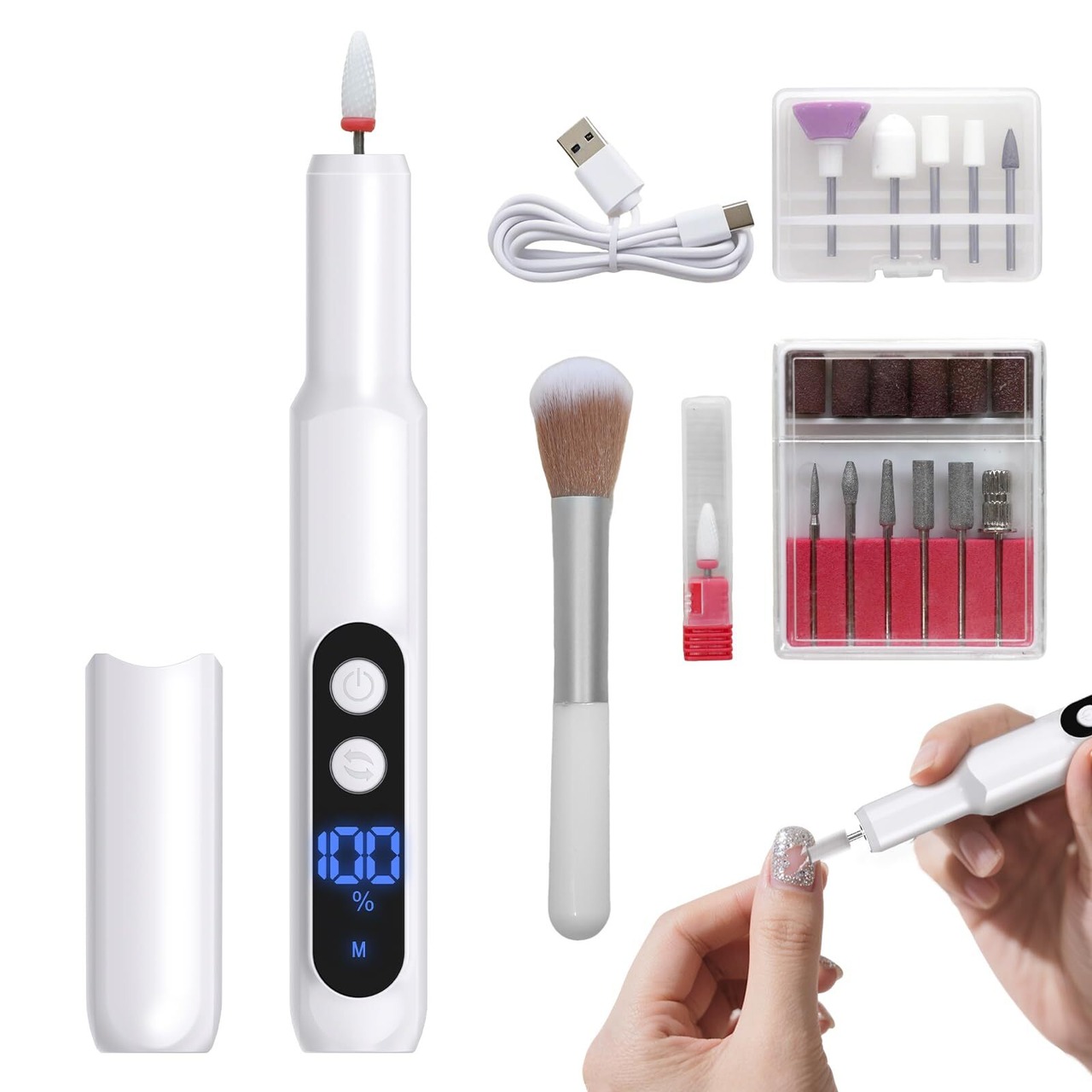 【13 in 1 多機能ネイルケアセット】 ネイルマシンはセラミックビット(高切削力)1本と金属ビット(低切削力)6本、ドリルビット5本、粗目・細目サンディングバンド6枚、クリーニングブラシ1本が付属。ジェルネイルオフ、爪先の研磨、ネイルカービング、角質除去など、様々な用途にお使いいただけます!さらに、この多機能ネイルマシーンを使えば、高額なネイルサロンの費用を節約できます!