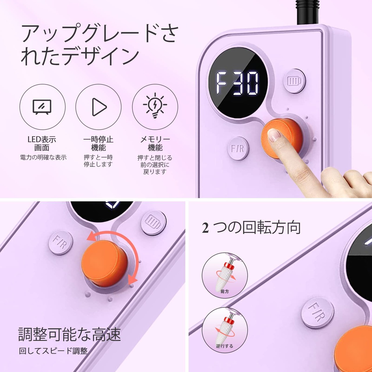 Saviland ネイルマシン ドリル マシン - 電動ネイル ドリル 電動ネイル ファイル ネイル ドリル ビット付き 30000RPM アクリル/ジェル ネイル除去用 充電式マニキュア ペディキュア キット サロン 家庭用 パープル