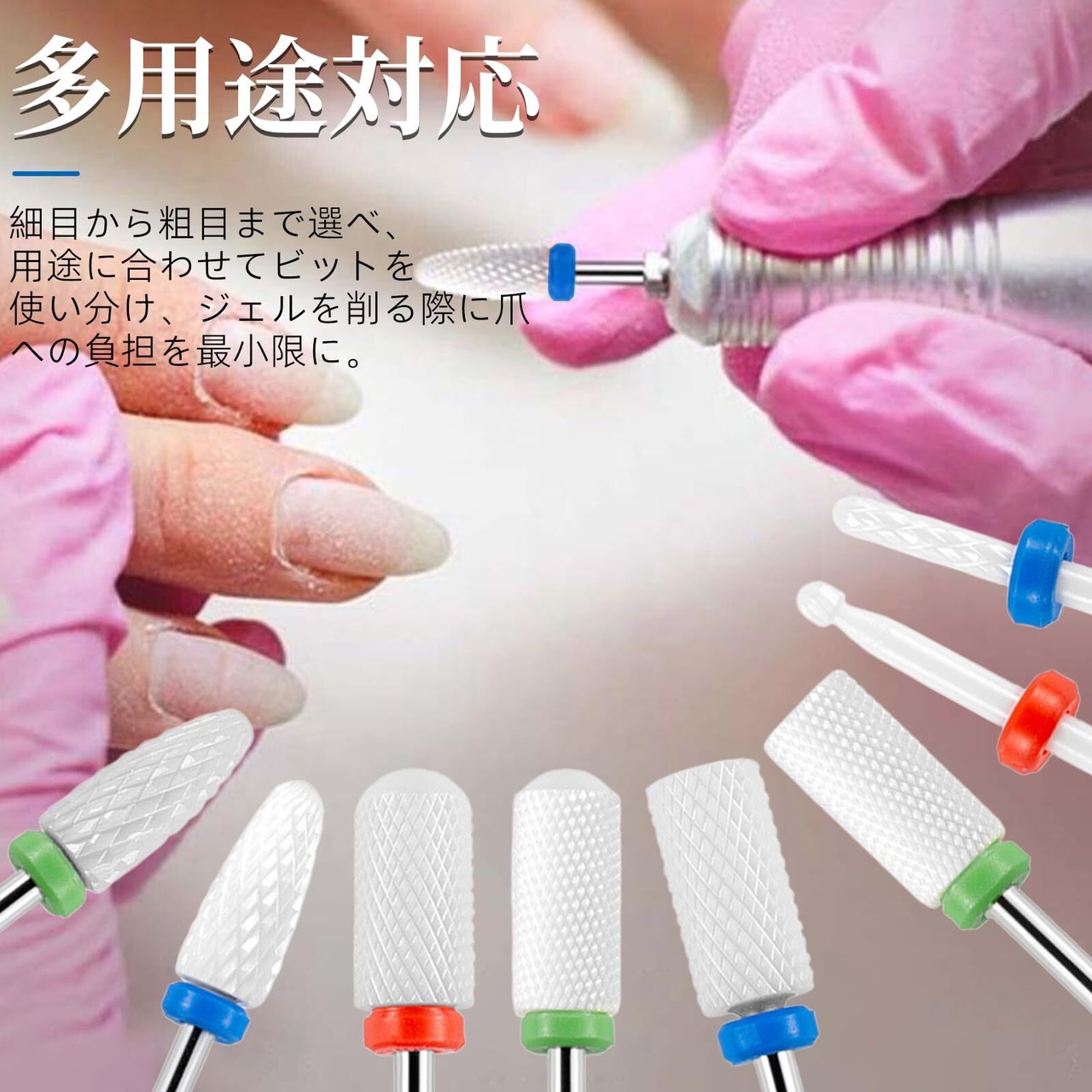 【多用途対応】細目から粗目まで選べ、用途に合わせてビットを使い分け、ジェルを削る際に爪への負担を最小限に。