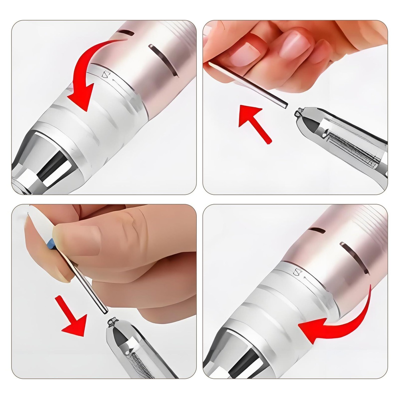 【簡単なヘッド交換】研磨ヘッドは簡単にロック解除して交換可能。電源を切ってから交換してください。