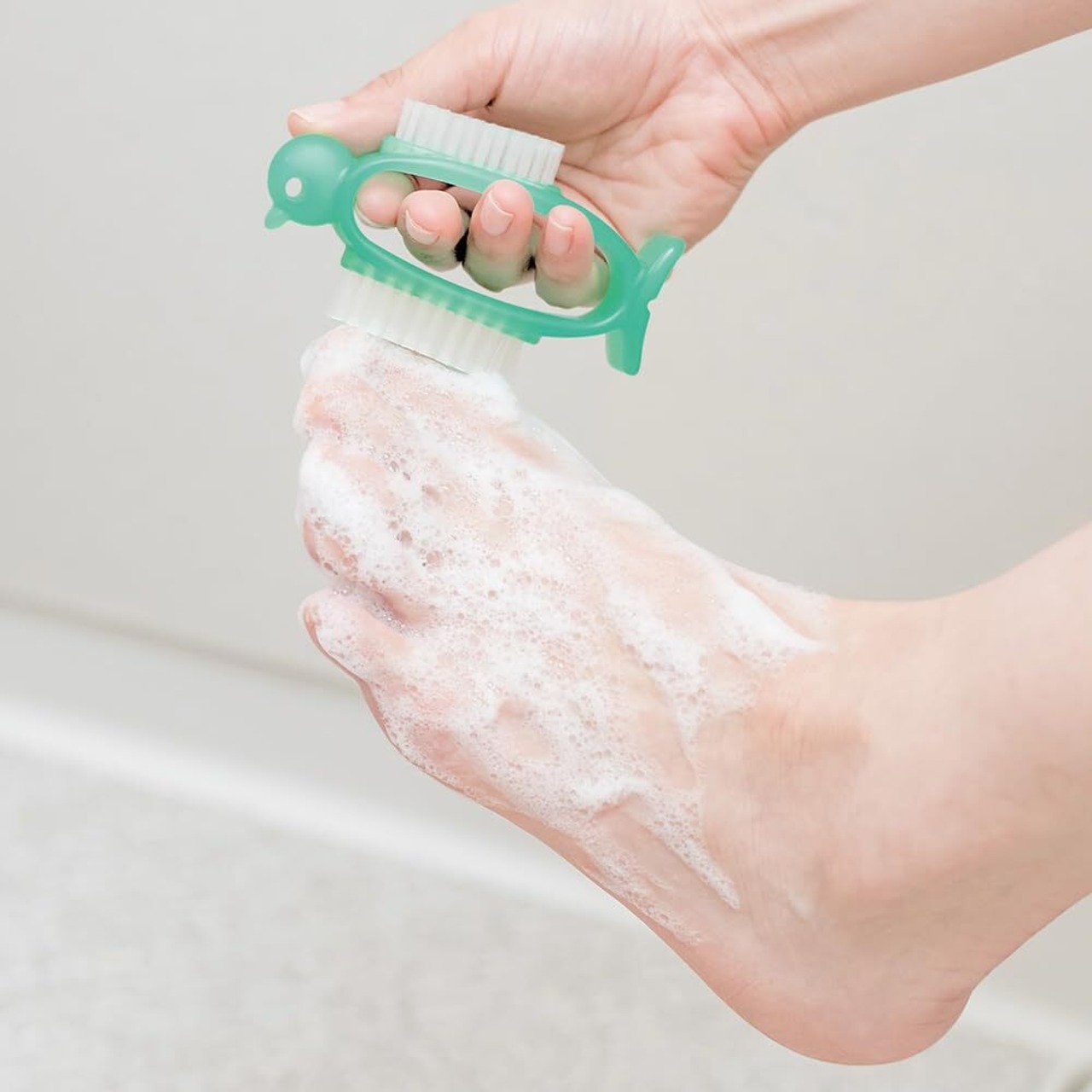 お子様がよろこんで手洗いできるようにペンギンの形をした爪・手洗い専用のブラシです。左右のブラシは爪・手洗い用と異なる硬さのブラシがついています。さあ、手洗いを楽しみましょう。