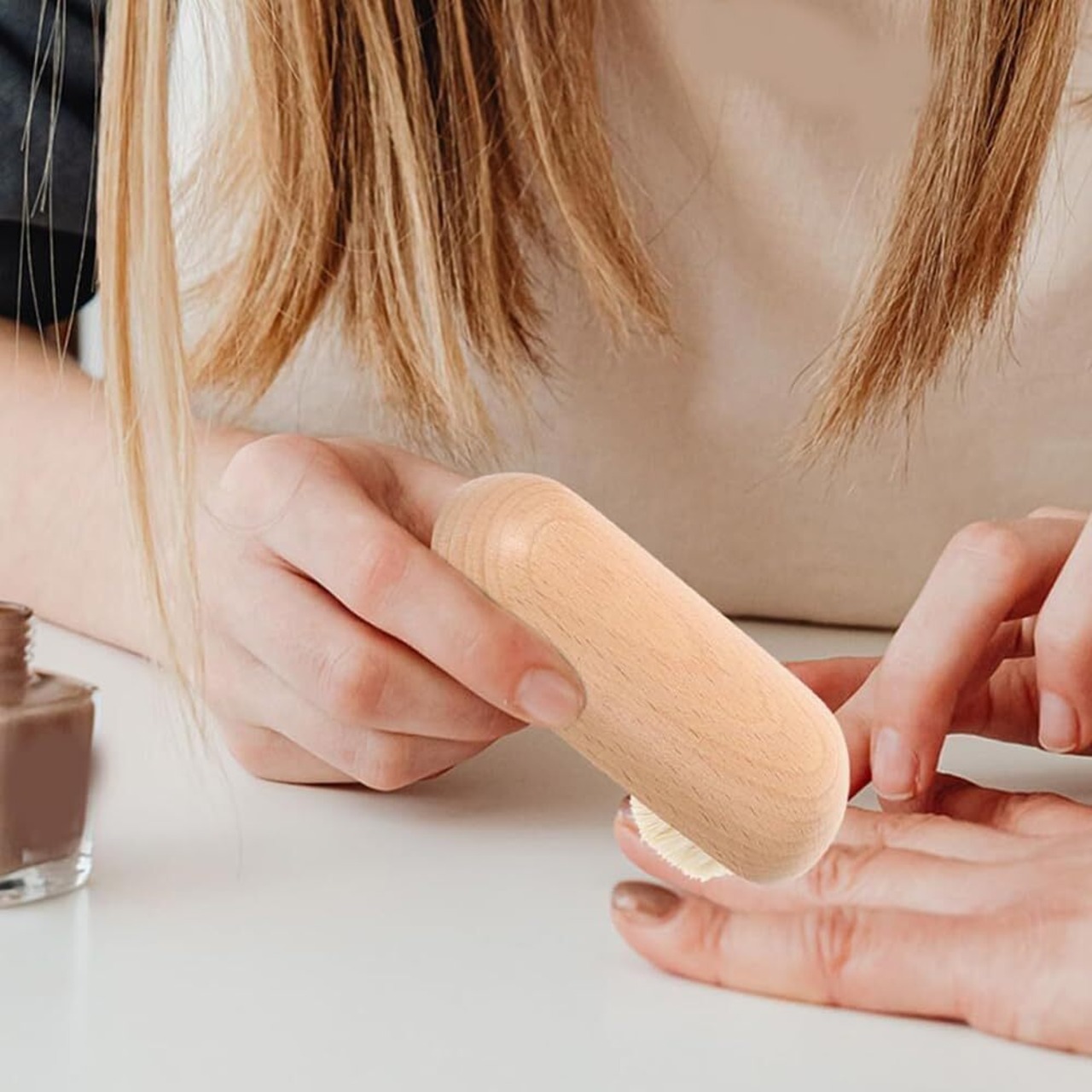 2個 クリーニングブラシ 指の爪ブラシ ネイルブラシ ネイルスクラバーブラシ ハンドネイルブラシ マニ ネイルブラシ 爪掃除用の木製ネイルブラシ ウール (ベージュ)