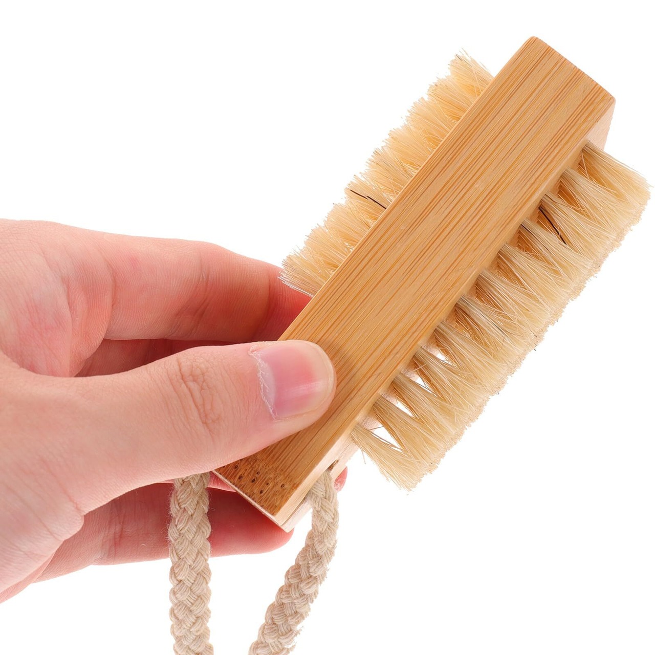Beaupretty 爪ブラシ 2個セット ネイルブラシ 木製 手洗いブラシ 両面使用可能 爪洗いブラシ クリーニング 爪 スクラブ ブラシ 付き 吊るし ロープ 9.7x3.8cm