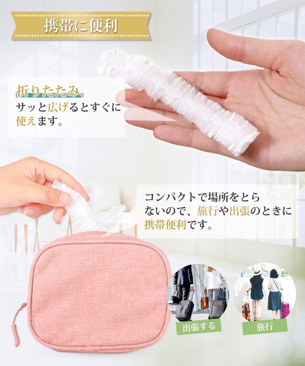 3●防水性に優れたポリエチレン素材を採用しており、丈夫で破れにくく、耐久性があります。ゴム端の処理もしっかりしているので、しっかり頭を包み。長く使用できます。