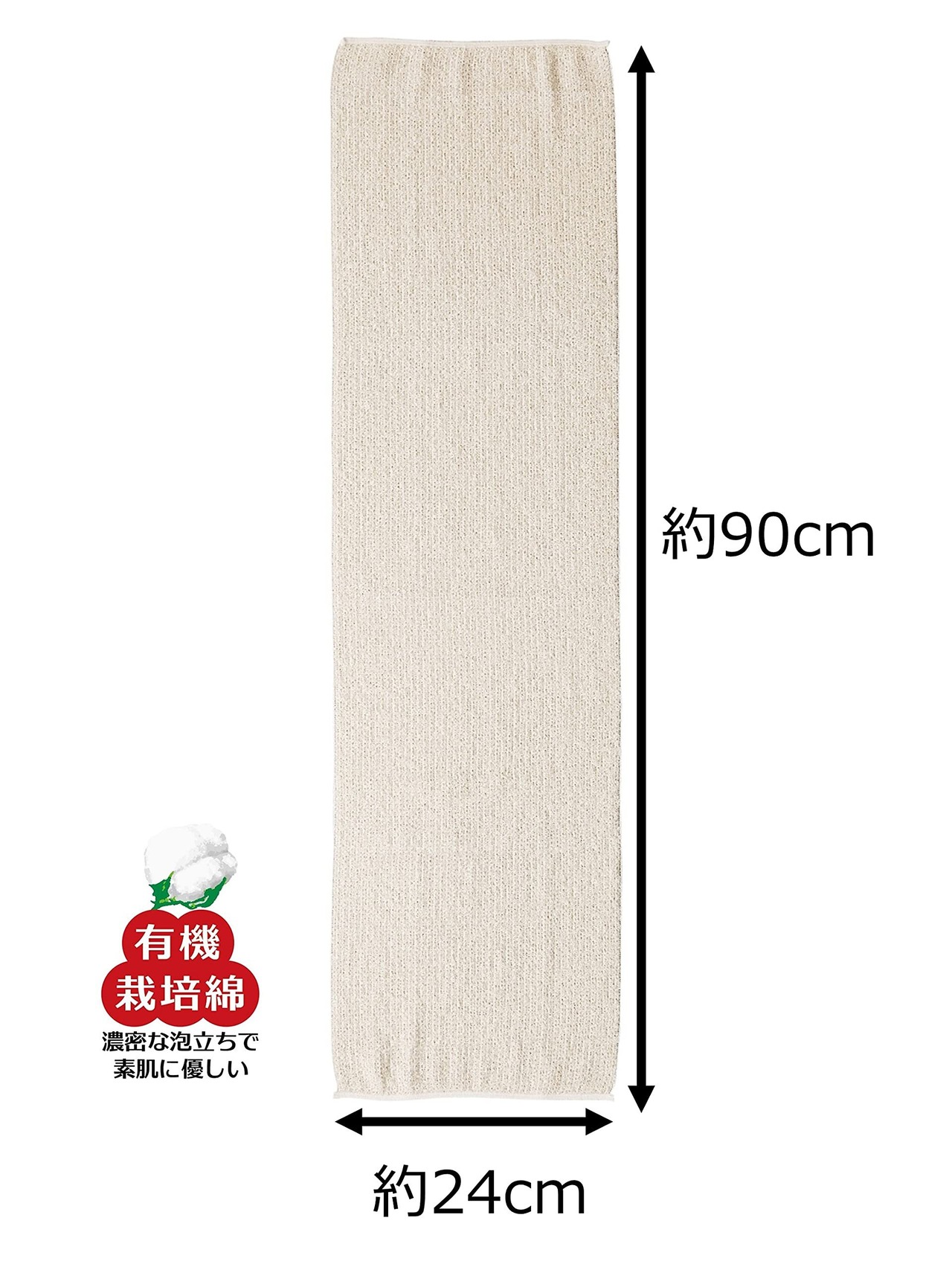 サンファブレス ボディタオル 日本製 泡立つ天然 オーガニックコットンタオル 幅24cm×長さ90cm 有機栽培綿 濃密な泡立ち タオル ホワイト 体洗い