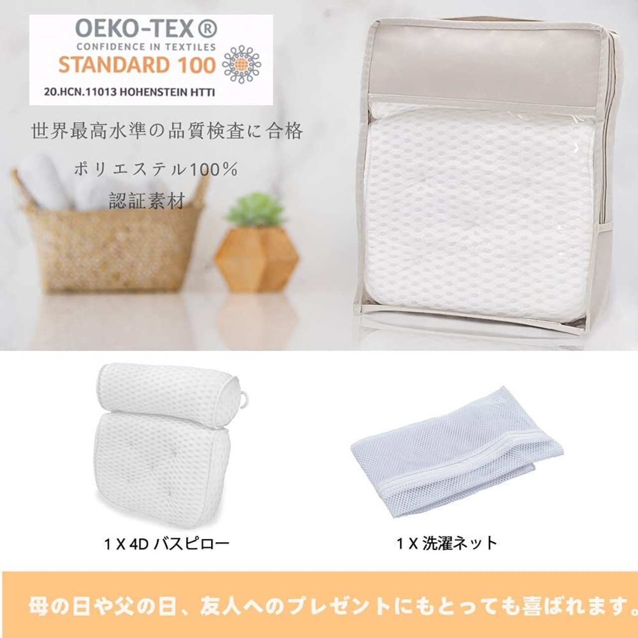 AIRMFJI バスピロー お風呂枕 まくら 4D通気メッシュ 柔らかい 吸盤付き 滑り止め 洗濯ネット付き 母の日のプレゼント人気 半身浴 バスタブ バス用品 リラックスグッズ プレゼント