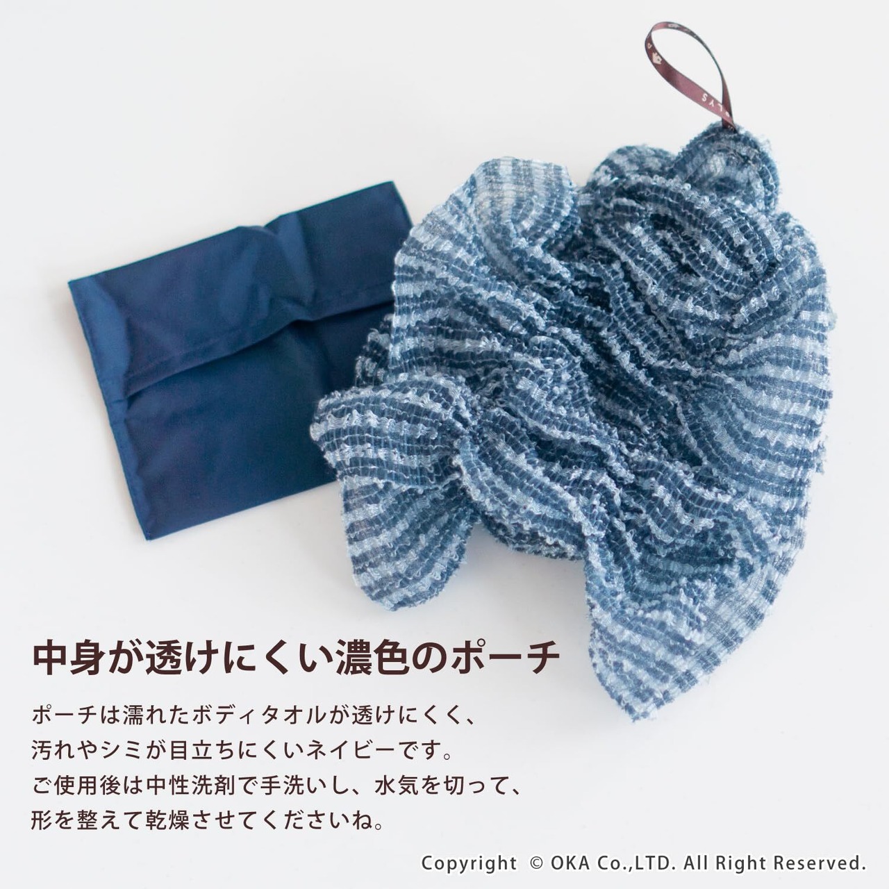 オカ(OKA) トラベルボデイタオル ネイビー 持ち運び用ポーチ付き (プリス リレッツァ 日本製 ナイロン ふつう かため 携帯用ボディタオル)