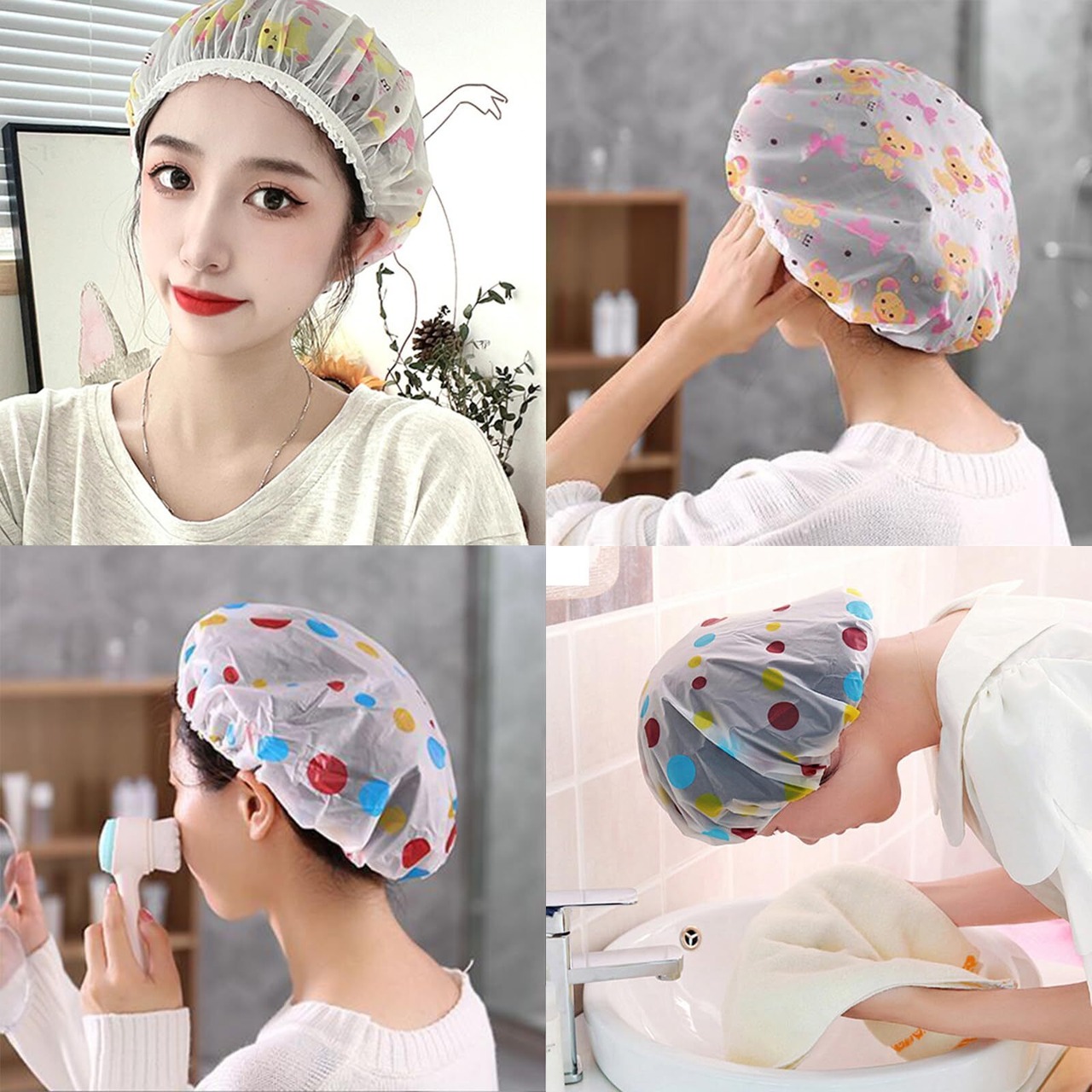 可愛いシャワー防水キャップ6枚セット、毎個のパターンは異なる。