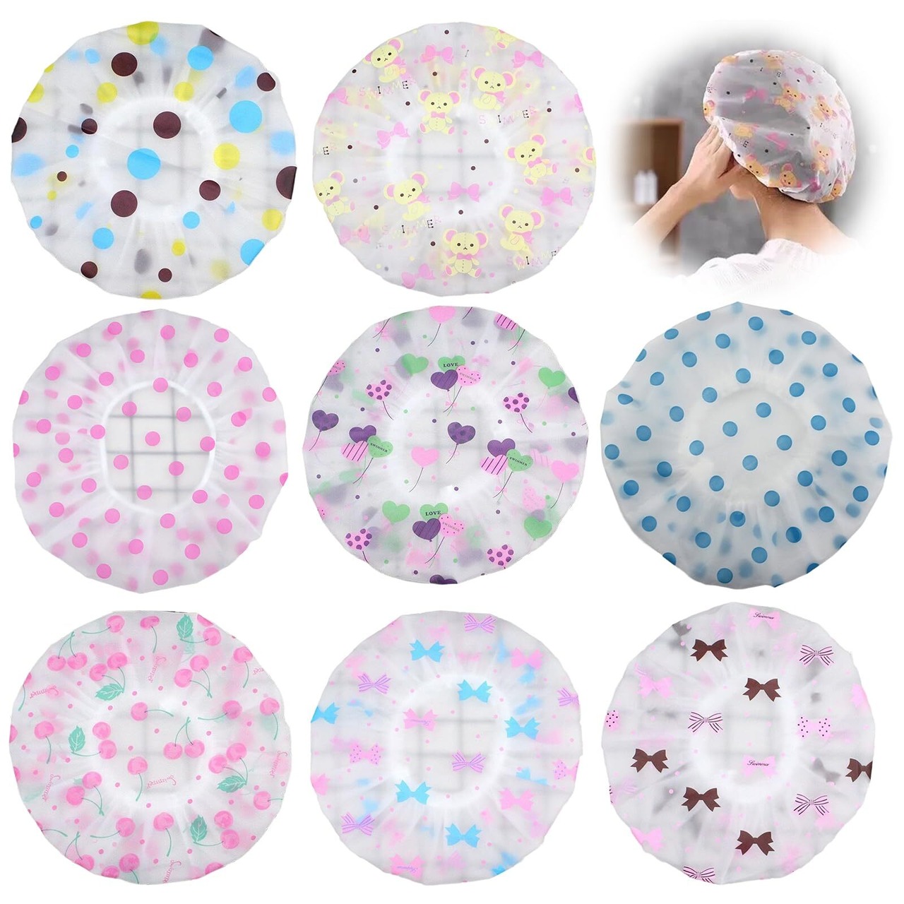 ADOFUN シャワーキャップ 繰り返し 防水シャワーキャップ 厚手・大型 洗髪キャップ 可愛いデザイン お風呂用帽子 女性用 温泉 洗顔 調理用 旅行にも便利 異なる柄(8枚セット)