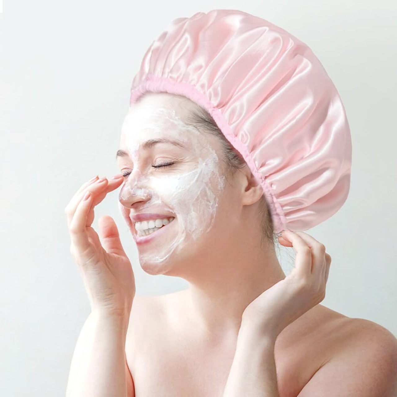 シャワーキャップ 3層 3イン1 シャワーキャップ 入浴防水キャップ 大きめ 吸水性 ドライヘアキャップ 浴室キャップ 入浴用品 シャンプー/メイクアップ/SPA/入浴に最適 (ピンク)