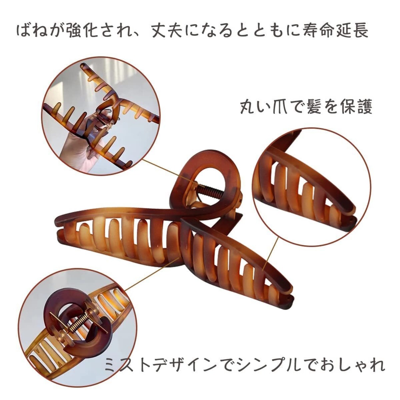 ビッグサイズ:ギザギザのヘアクリップは13cmのサイズなので、ロングカールで濃い髪にもしっかりつかまります。