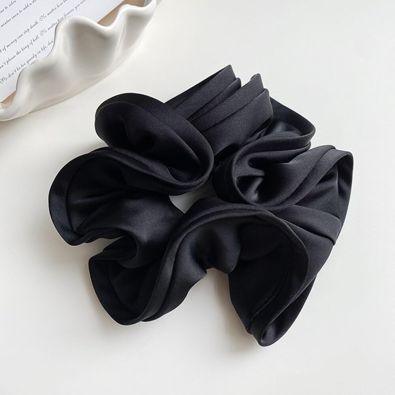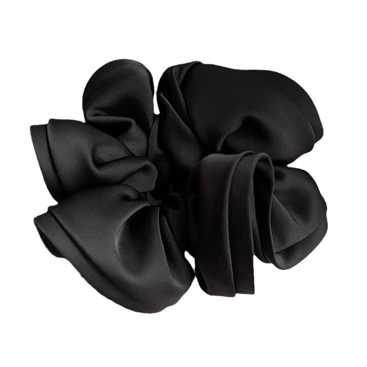 shefun シュシュ シルク ヘアゴム ボリューム サテン 髪ゴム エレガント おしゃれ 大人 レディース 髪飾り JP218 (黒色)