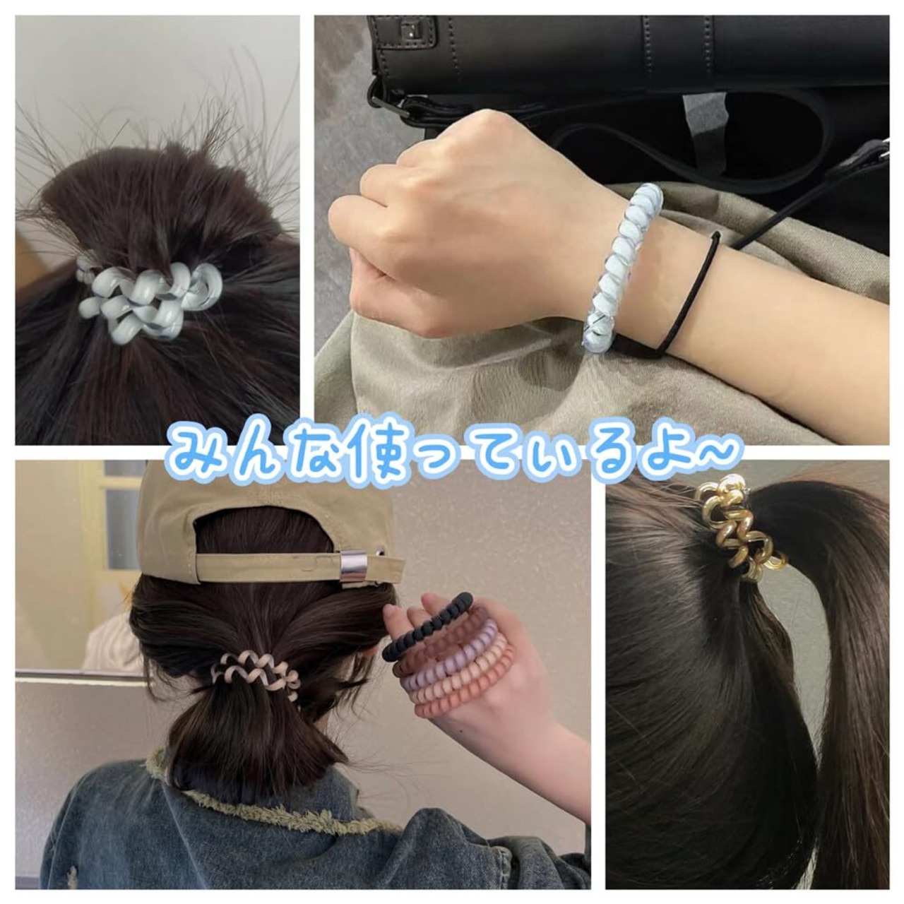 【素材】ゴム、滑らかなプラスチック製のらせん構造により、もつれを防ぎ、取り外す時に切れ毛を防ぎます。超弾性の良質素材、コイルはよく伸びるので、ポニーテール、メッシーバンや三つ編みの髪すべてを支えてくれます。