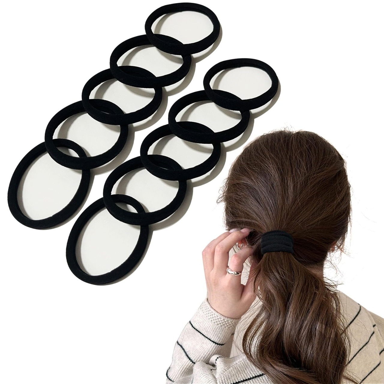 Fuyunohi ヘアゴム 黒 おしゃれ 大人 ヘアアクセ お団子 跡がつかない 髪ゴム 髪留め 伸びる 太め 高弾性 10本セット アクセサリー かわいい 韓国風 簡約 無地 上品 小物 切れない (ブラック)