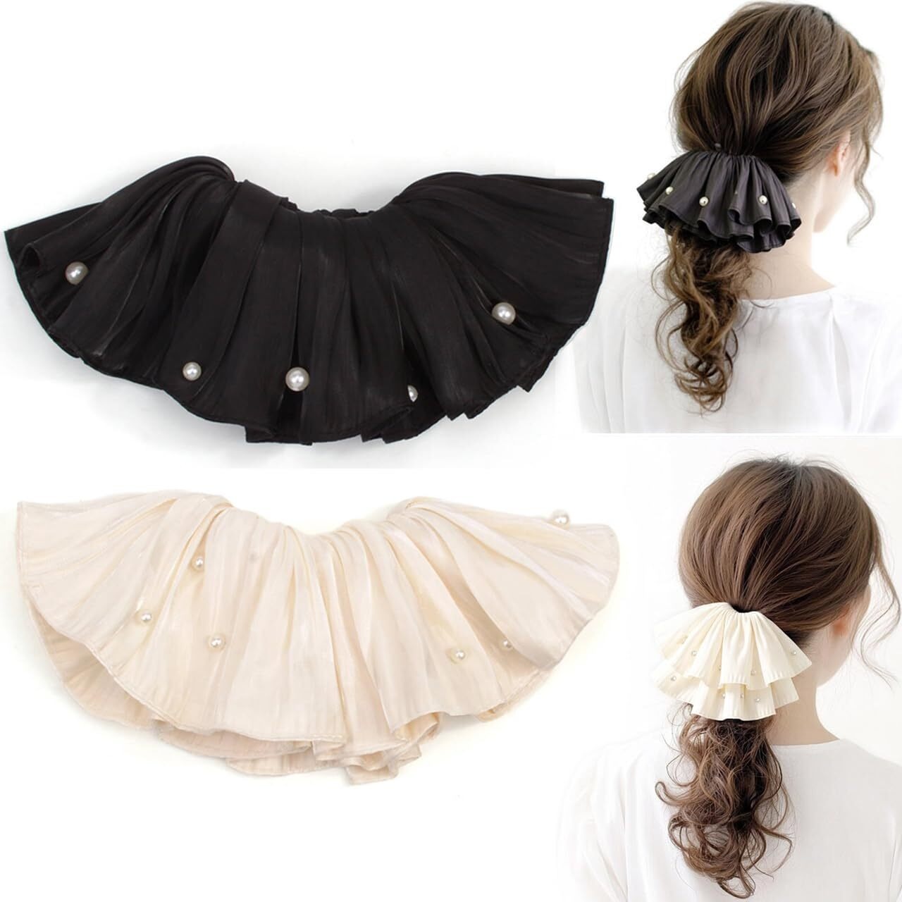 BIANHUAN シュシュ 大人 シフォン ボリューム ヘアアクセサリー ヘアゴム おしゃれ ふんわり 髪留め まとめ髪 2個セット大ぶり かわいい 大きい フォーマル オフィス カジュアル 誕生日 プレゼント 母の日
