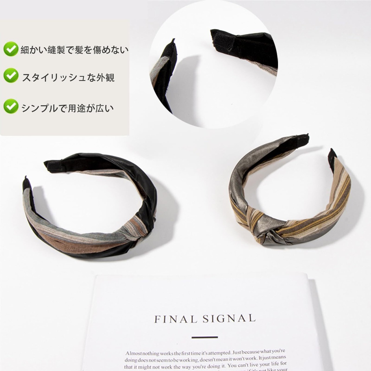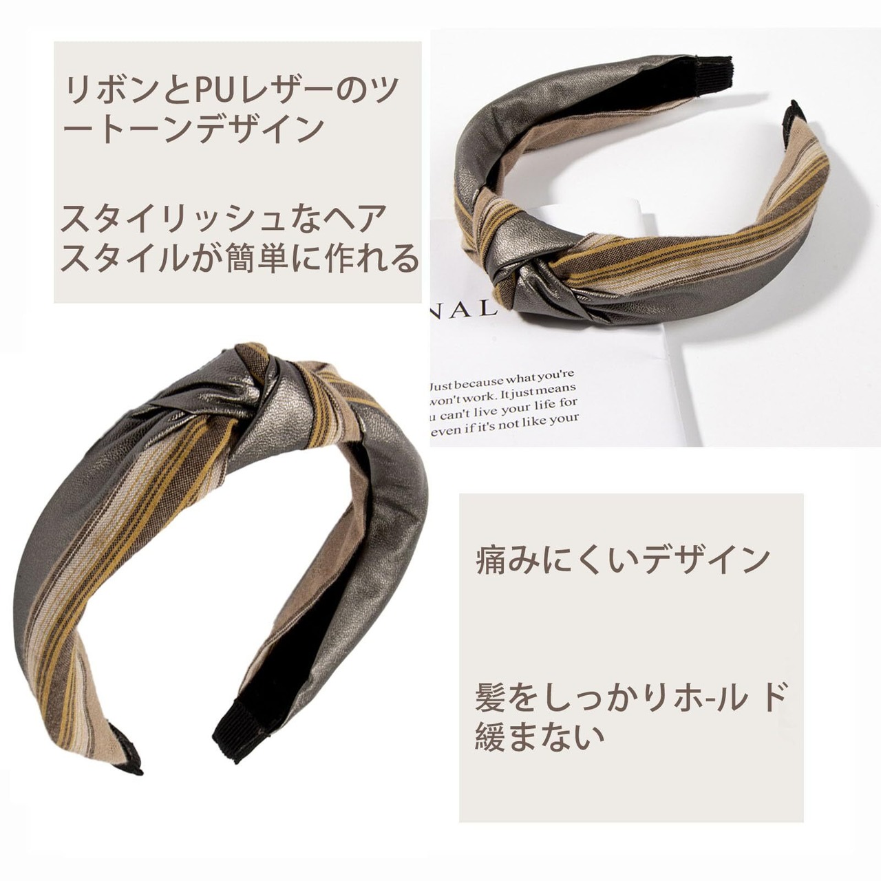 AUTAKI カチューシャ 綿麻+PUレザー カチューシャ 痛くない 韓国風 ヘアバンド カチューシャ レディース バイカラー クロス ツイスト 滑り止め 幅広 ヘアカチューシャ ガーリー 大人っぽい おしゃれ フォーマル ヘアアクセサリー 普段使い(ブラック, 13*15*3cm)