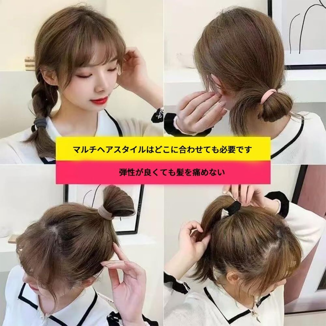 【幅広い用途】細い髪、太い髪、ストレートヘア、太い髪、巻き髪に適しており、簡単に美しいローポニーテールやハイポニーテールに結ぶことができ、エレガントでスタイリッシュで、あらゆる種類の服装やヘアスタイルに完璧にマッチします。