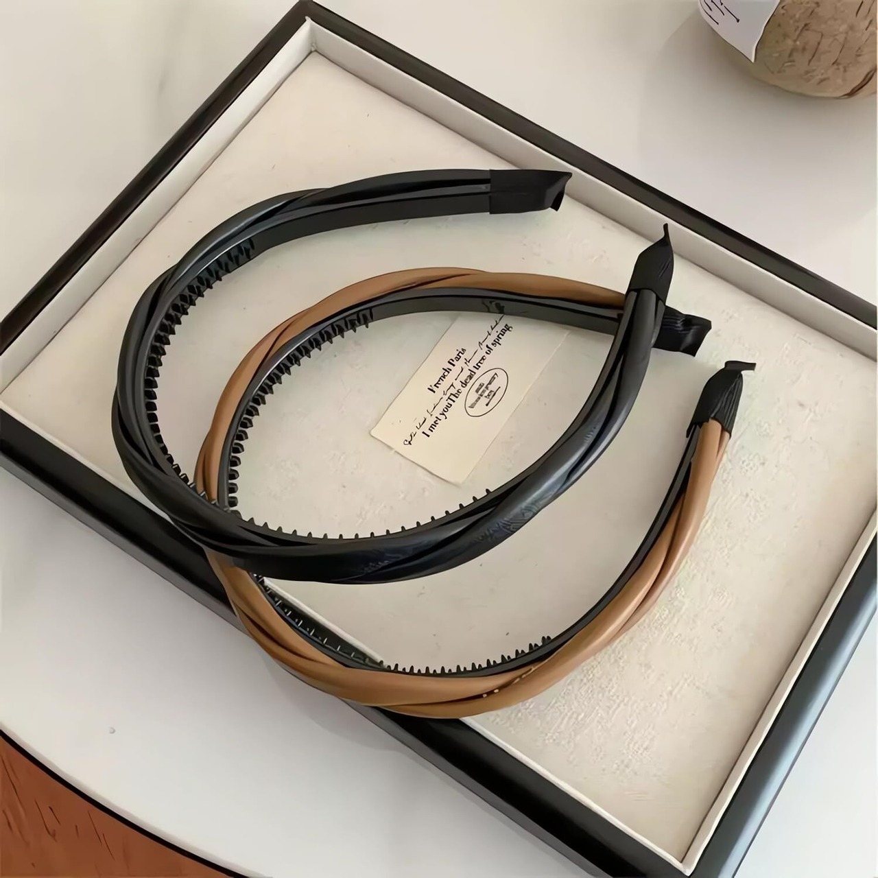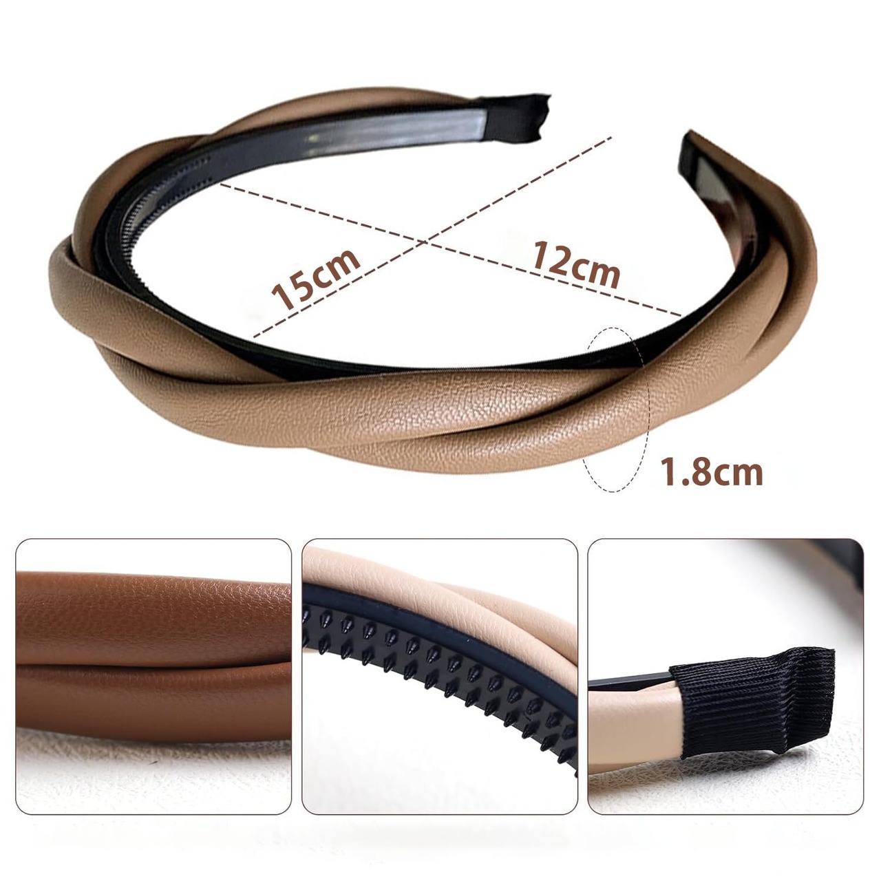 KISARGカチューシャ フェイクレザー ヘアバンド クロス ねじり ツイスト 編み込み風 レディース 大人 かわいい おしゃれ 2セット ブラックとブラウン