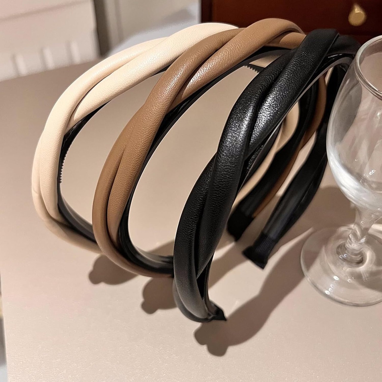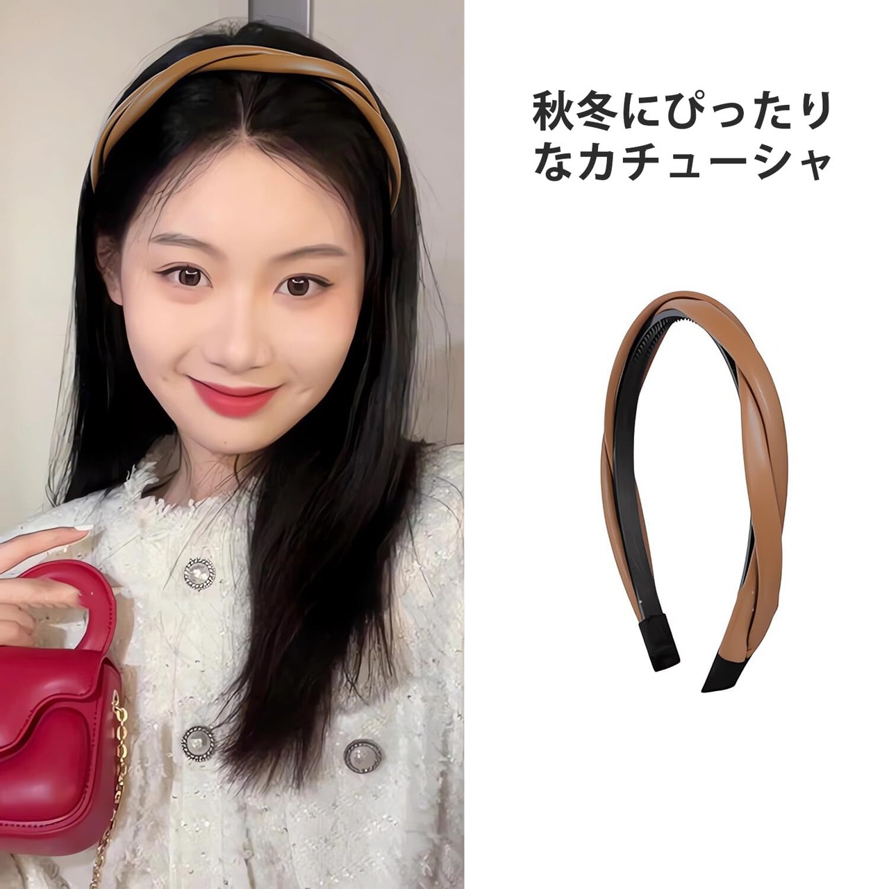 【大人かわいいシックなデザイン】レザー風の落ち着いたデザインのカチューシャ。ソフトな付け心地で使いやすく、一つ加えるだけでトレンド感のあるヘアスタイルに大変身です。