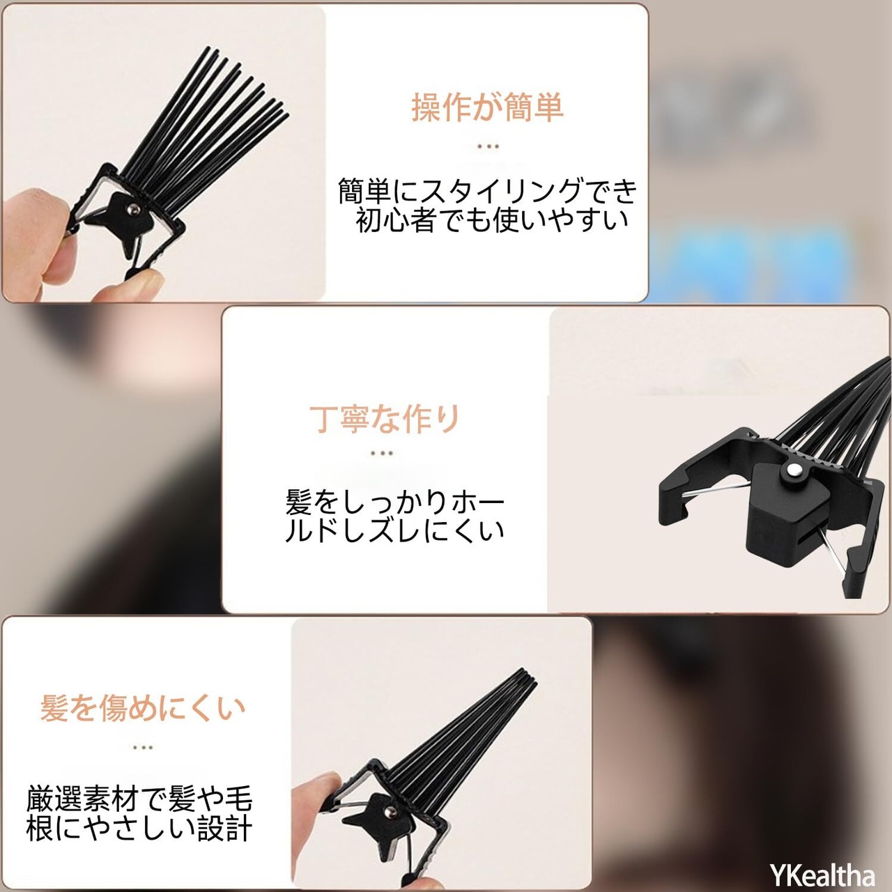 YKealtha ヘアボリュームピンチャー【2025新型】 前髪クリップ 前髪たちあげクリップ 根元立ち上げクリップ 毛流れ センターパート ボリューミーヘア ぺたんこ髪 ヒートレスカール ヘアボリューム 前髪 たちあげ クリップ 男女兼用 (ブラック)