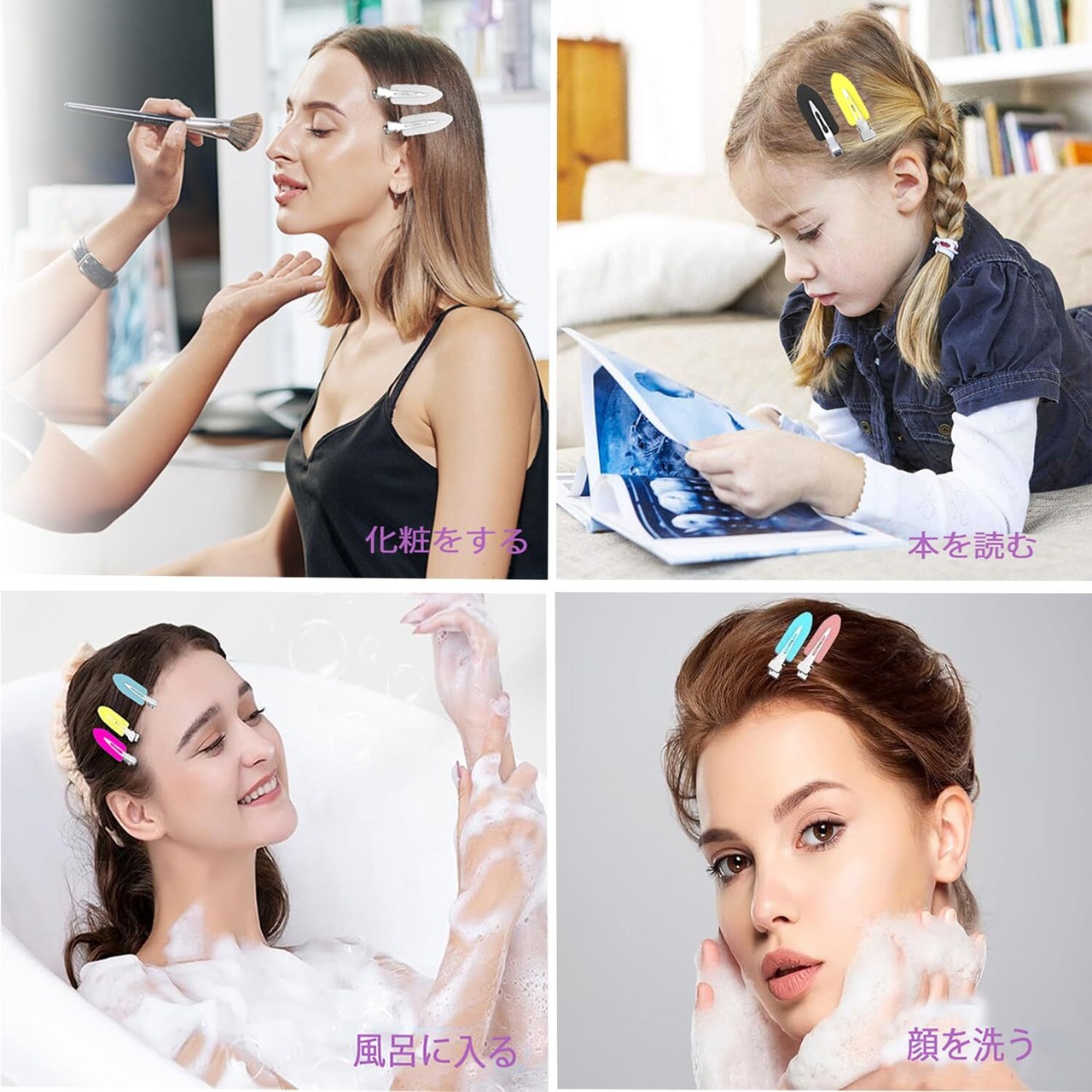 【幅広い用途】メイクや洗顔、整髪、勉強、家事などのさまざまなシーンで活躍できます。カーリーヘアでもストレートヘアでも、跡を残す心配なくヘアスタイルをパーフェクトに保つことができます。ヘアサロンで使用される専用クリップ。頭を下げた際、前髪が手前に垂れ込まないようしっかり固定して、顔周りをスッキリさせます!