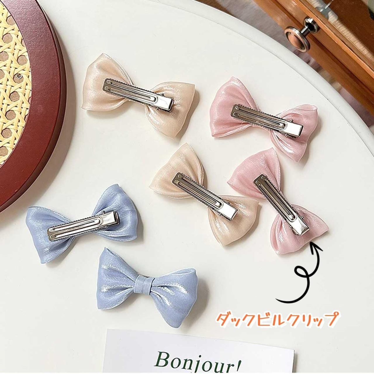 【素材】:高光沢のオーガンジー。ヘアクリップは高品質の合金で作られ、頭皮を傷つけず、快適に着用でき、質感と色を醸し出しています。ダッカール仕様なので、使いやすいです。