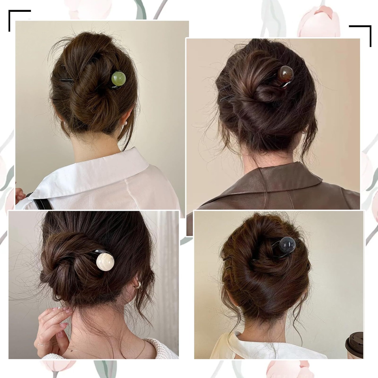 YANHUILAY かんざし 簪 U字型【4個セット】Uピン 髪飾り U字コーム おしゃれ 団子 ヘアアクセサリー 和装小物 普段使い 結婚式 成人式 卒業式 パーティー レディース