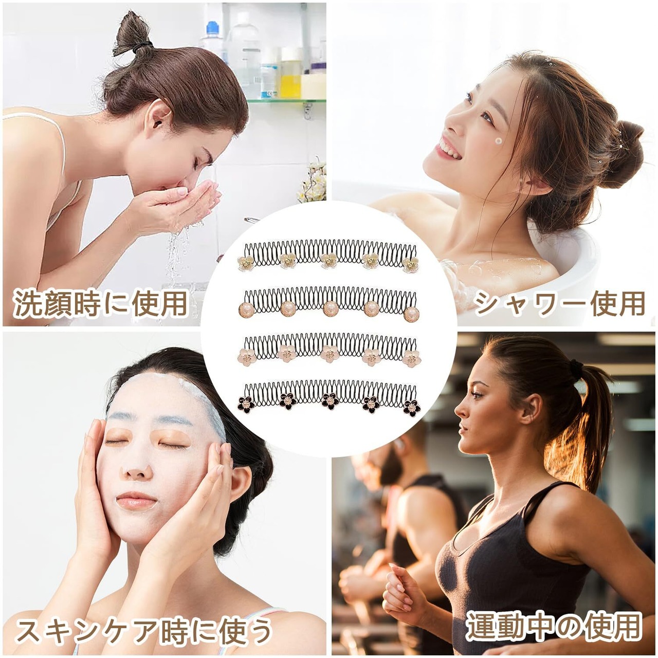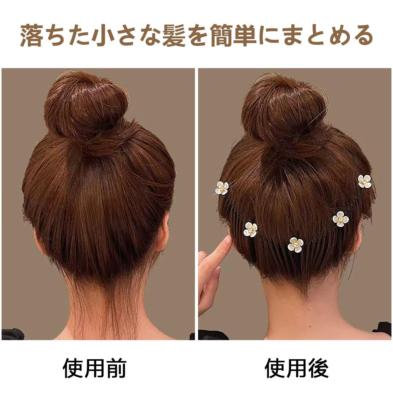 ADOFUNヘアコーム ワイヤーコーム【4個セット】髪束ね U型 目に見えない ヘアクリップ 簡単 まとめ髪 ワイヤーコーム 37本櫛 フラワー パール キュート ファッションヘアピン ヘアブラシ レディース 卒業式 パーティー 着物 子供 レディース 髪細め用 前髪 前髪後ろ髪兼用