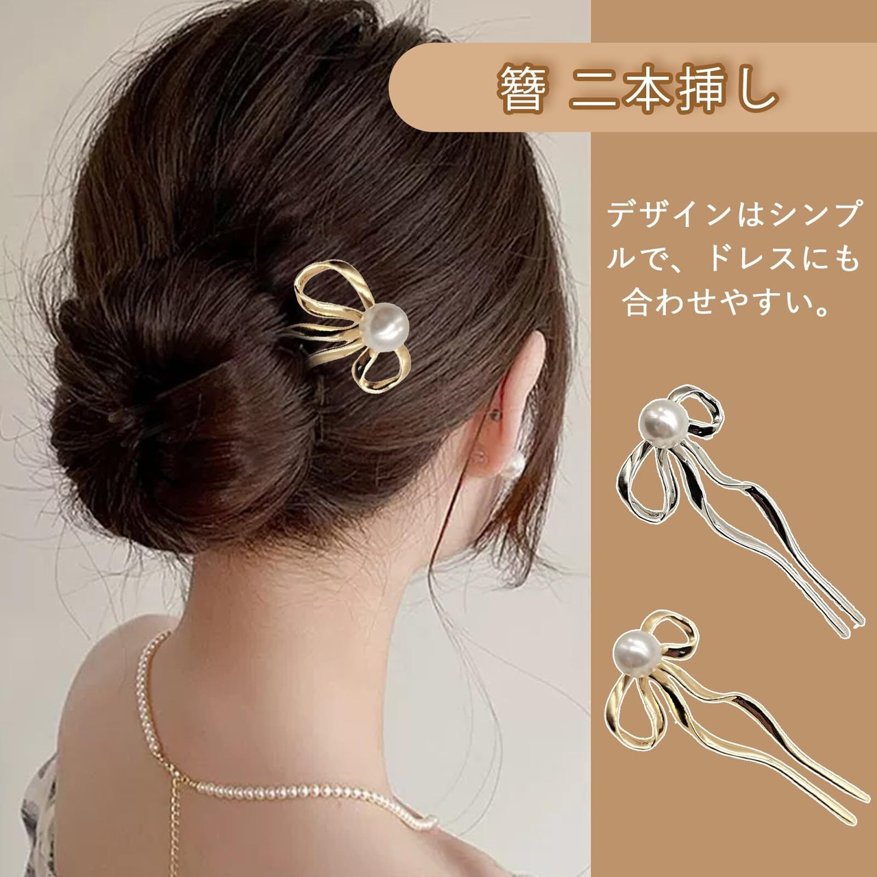 【簪 二本挿し】簪 二本挿しはリボン形状を用いたデザイン、シンプルでスタイリッシュなデザイン、エレガントで魅力が溢れています。デザインはシンプルで、ドレスにも合わせやすい。
