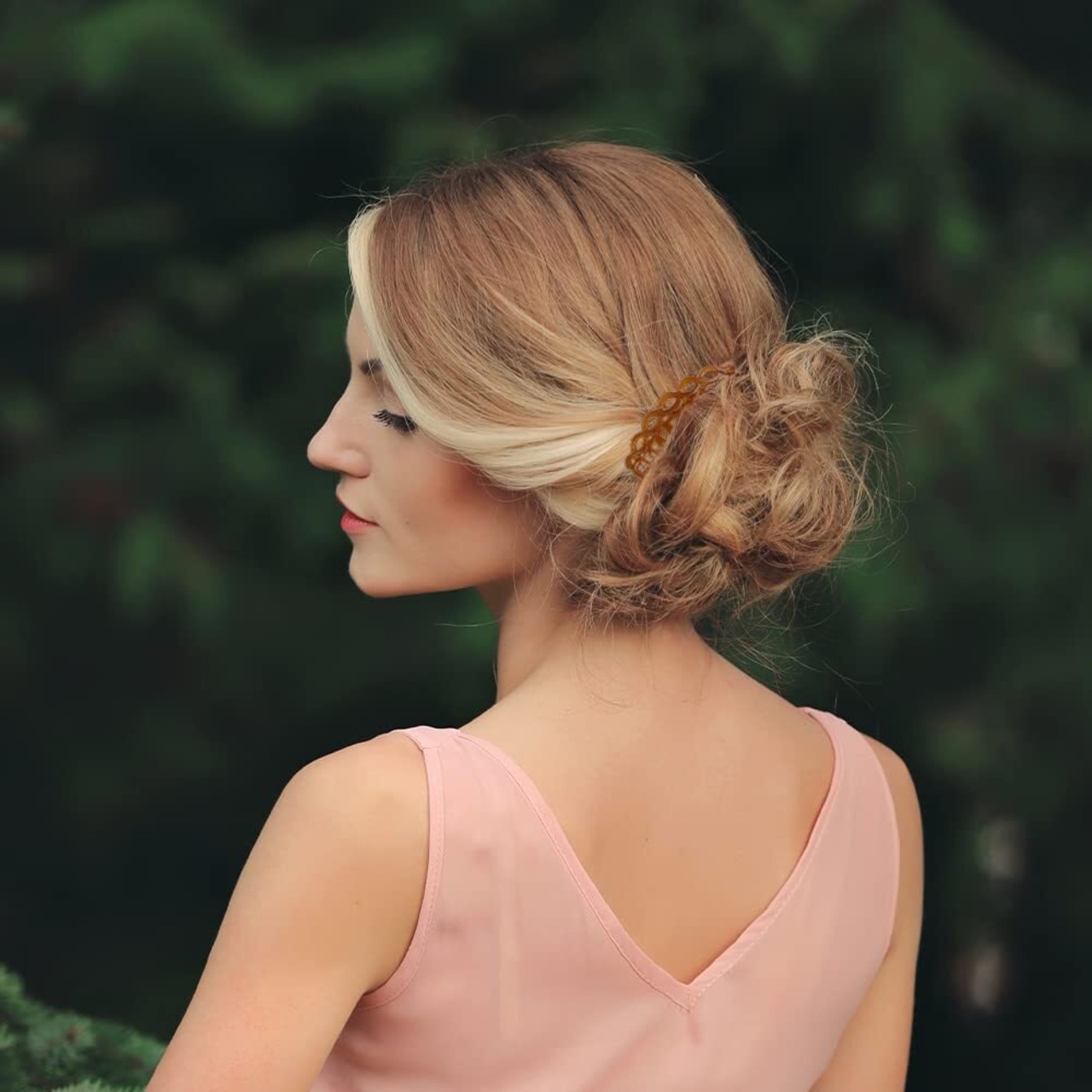 【実用的なデザイン】 スライドコームのマルチトゥースデザインは、髪をしっかりと固定し、簡単に滑り落ちません。 頭の形にフィットし、頭のあらゆる角度で使用するのに最適なカーブデザイン。 ヘアツイスト コームは、ゆるい髪を片付け、髪型をよりエレガントで繊細に見せるのに役立ちます。