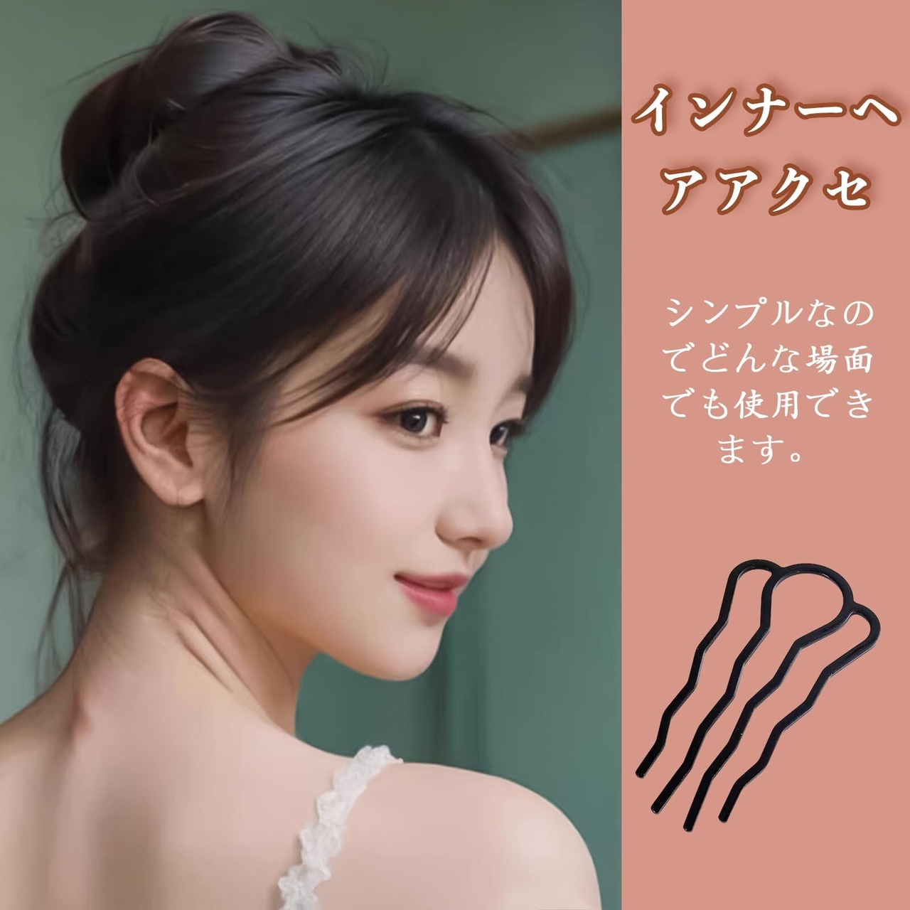 インナーヘアアクセ (10個セット) 夜会巻きコーム かんざし お団子 簡単 まとめ髪 夜会巻き ヘアアレンジ 髪飾り ヘアアクセサリー ブラック