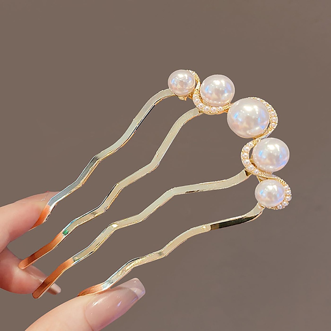 3. エレガントなデザイン 夜会巻きコームには美しい真珠が埋め込まれており、エレガントで魅力的なデザインです。これらの真珠は光に照らされると輝きを放ち、着用者を優雅で魅力的な存在にします。髪に美しくフィットし、滑らかで堅牢なホールドを提供します。パーティーやディナー、カジュアルな日常のヘアスタイルに最適です。