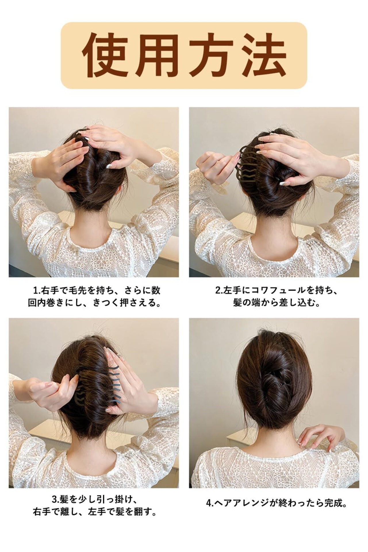 髪に差し込むだけで、しっかりと頭に固定でき、抜けにくい。