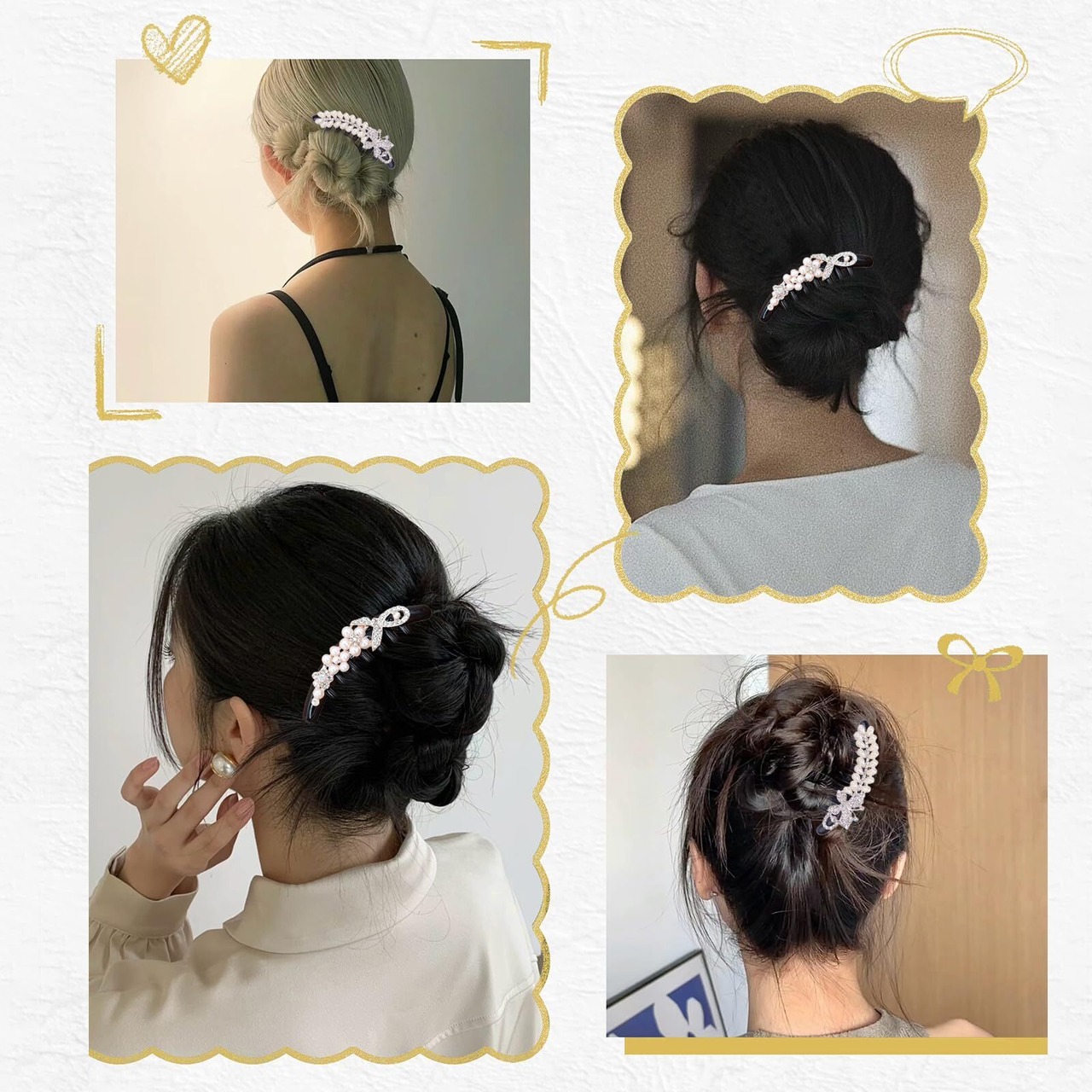 【夜会巻きコーム】夜会巻きコームは美しいパールとラインストーンで構成されており、スタイリッシュなデザイン、エレガントで魅力が溢れています。美しい色彩で輝き、エレガントさを演出する、日常生活で抜群の存在感を放つパールのヘアコームです。