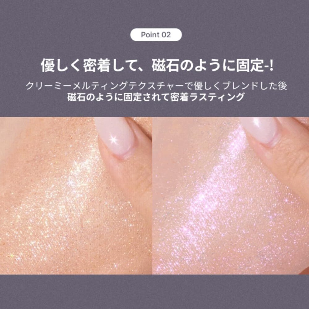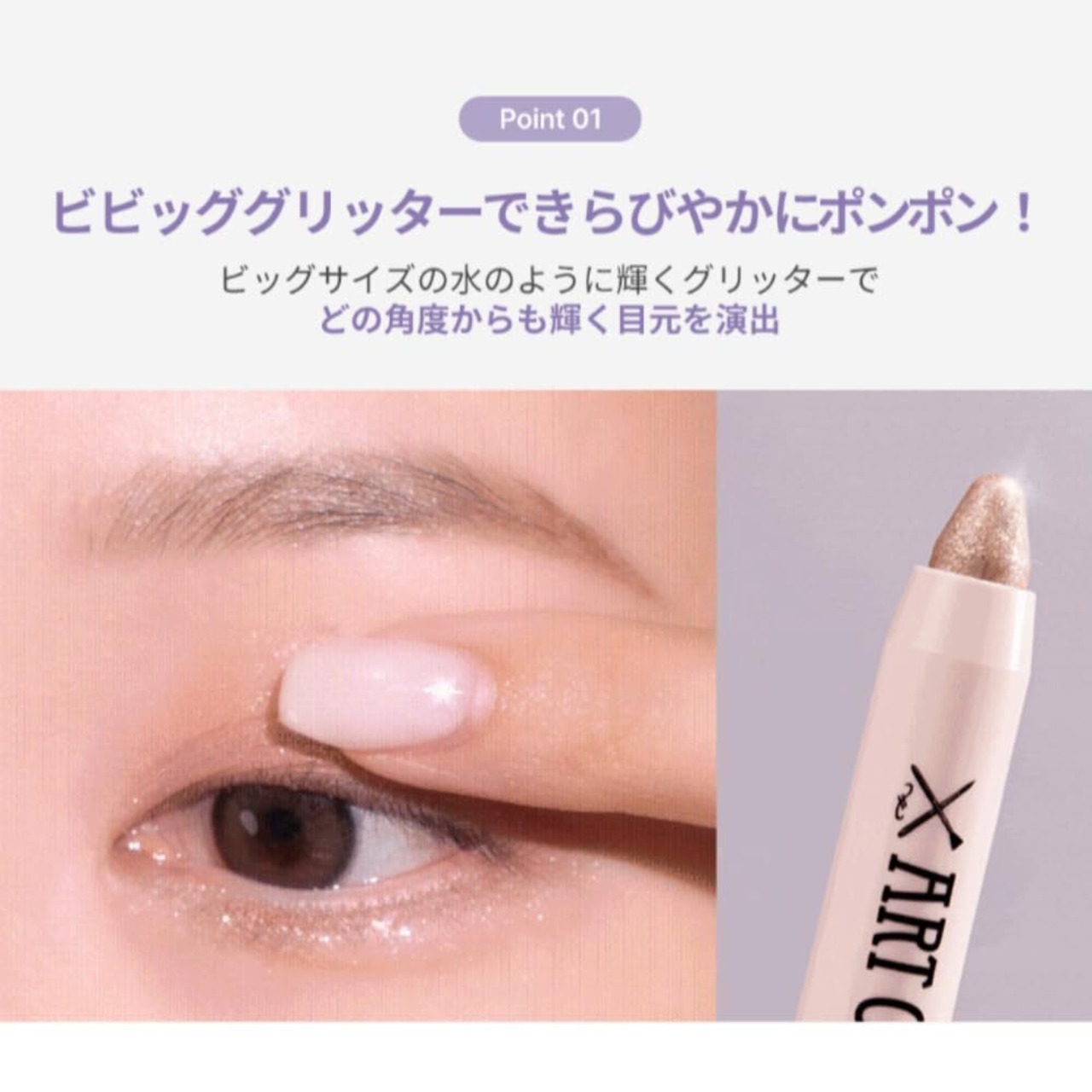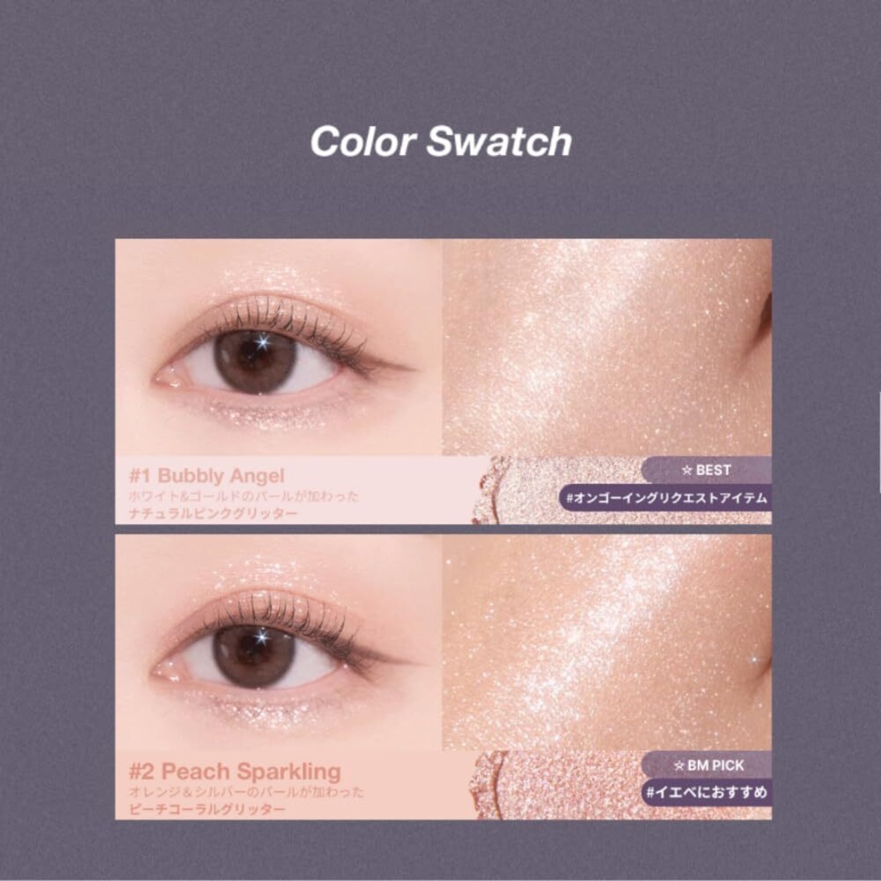 キラキラの仕上がり: 大きなグリッターが配合されており、目元に華やかさを与えます。