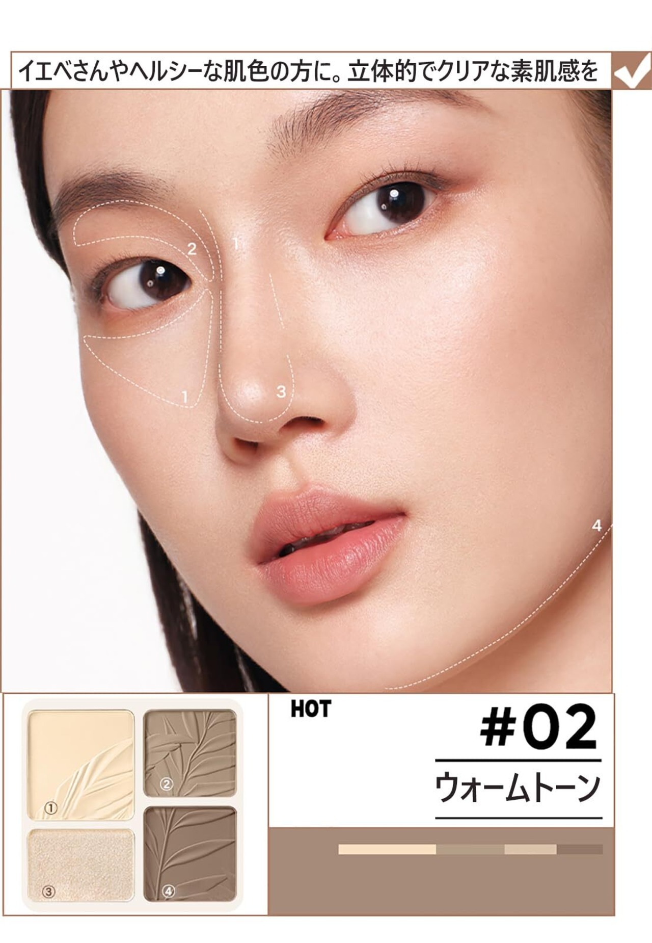 【COLOR】#01:ブルべさんや血色をプラスしたい方に。血色をプラスしながら立体感も。マットハイライト増量のリニューアル版。#02:イエベさんやヘルシーな肌色の方に。立体的でクリアな素肌感を。マットハイライト増量のリニューアル版。#04:すべての肌色の方に。膨張色でふっくら、やわらかい立体顔に。マットハイライト増量のリニューアル版。