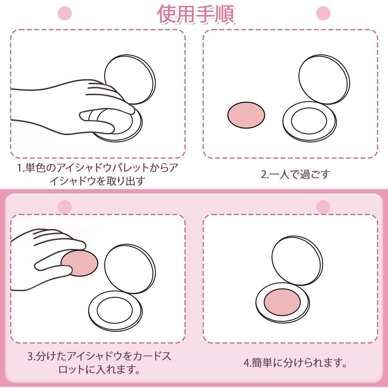 【使いやすい】アイシャドウを格子アルミニウムディスクに充填し、セットにある粘着紙でアイシャドウケースのスロットに固定するだけでよいです。(底を接着して固定することをお勧めします。そうしないと、落下する可能性があります)