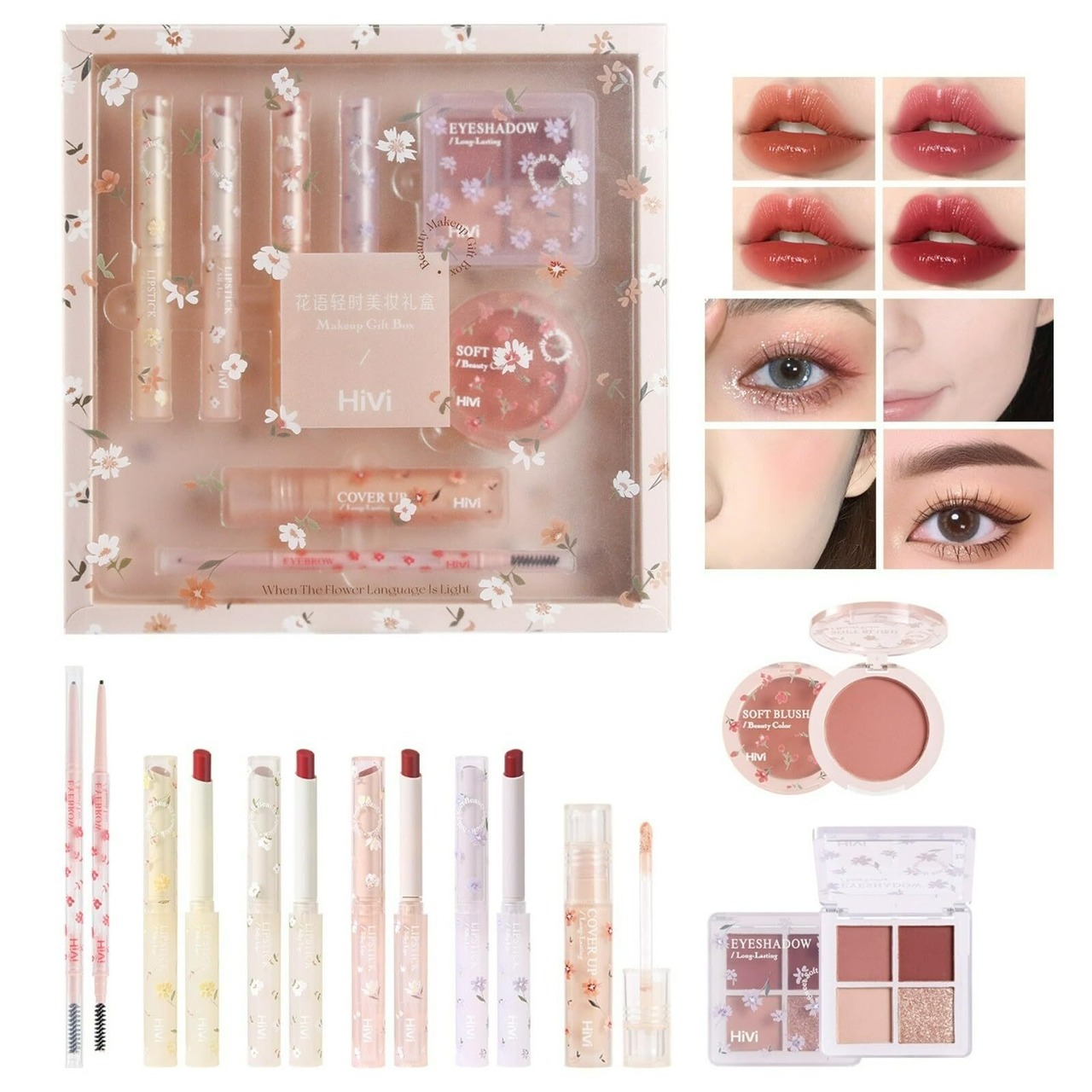 HiVi フル美容メイクアップ 8点セット化粧品口紅4本、アイブロウペンシル2本、コンシーラー1本、チーク1個、アイシャドウパレット1個 長持ち メイクアップセット 初心者 人気化粧品セット ハロウィン クリスマス 新年 誕生日 お祝い日 贈り物