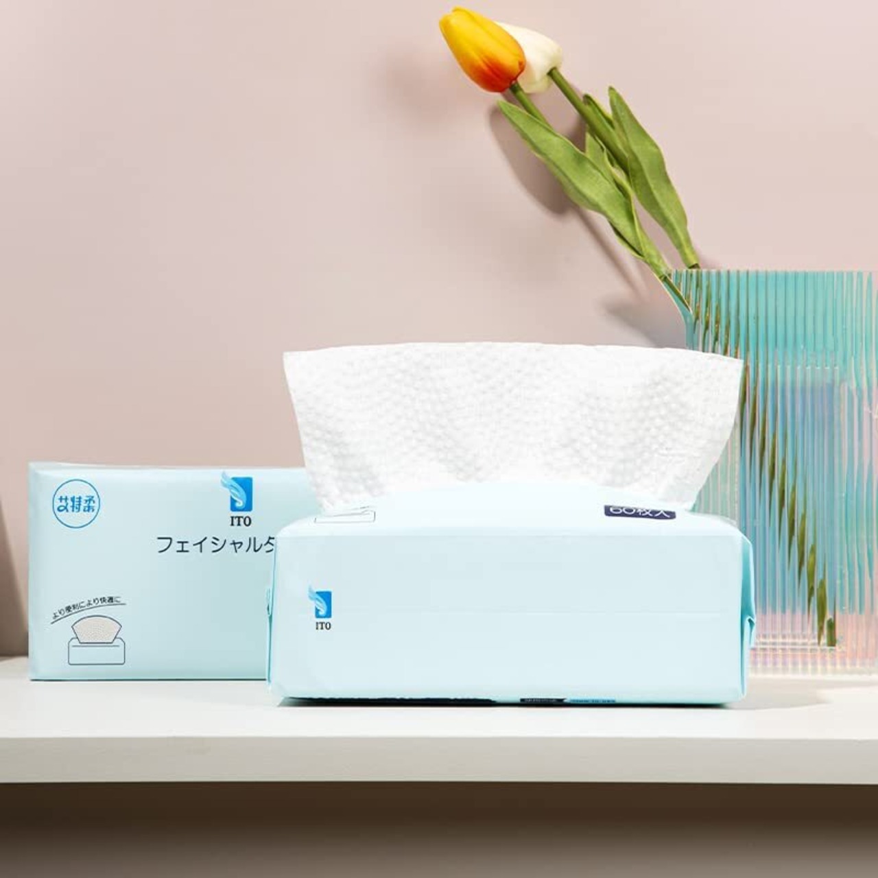 【天然素材を使用】ITOクレンジングタオルと同じ天然素材を使用したティッシュ型の商品です。