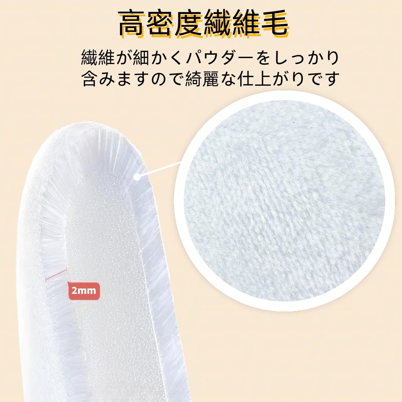 【高品質お肌に優しい素材】高密度の短毛から作られ、より均一に粉を取ることができます。柔らかくて、お肌に優しい。