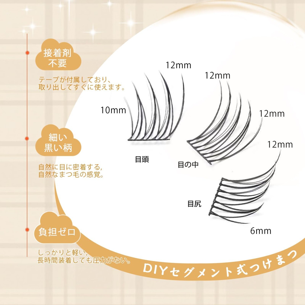 【太い軸での貼りやすさ向上】アップグレードされたセクション付きのまつ毛の軸は通常のものよりも太く、貼り付けがより安定します。