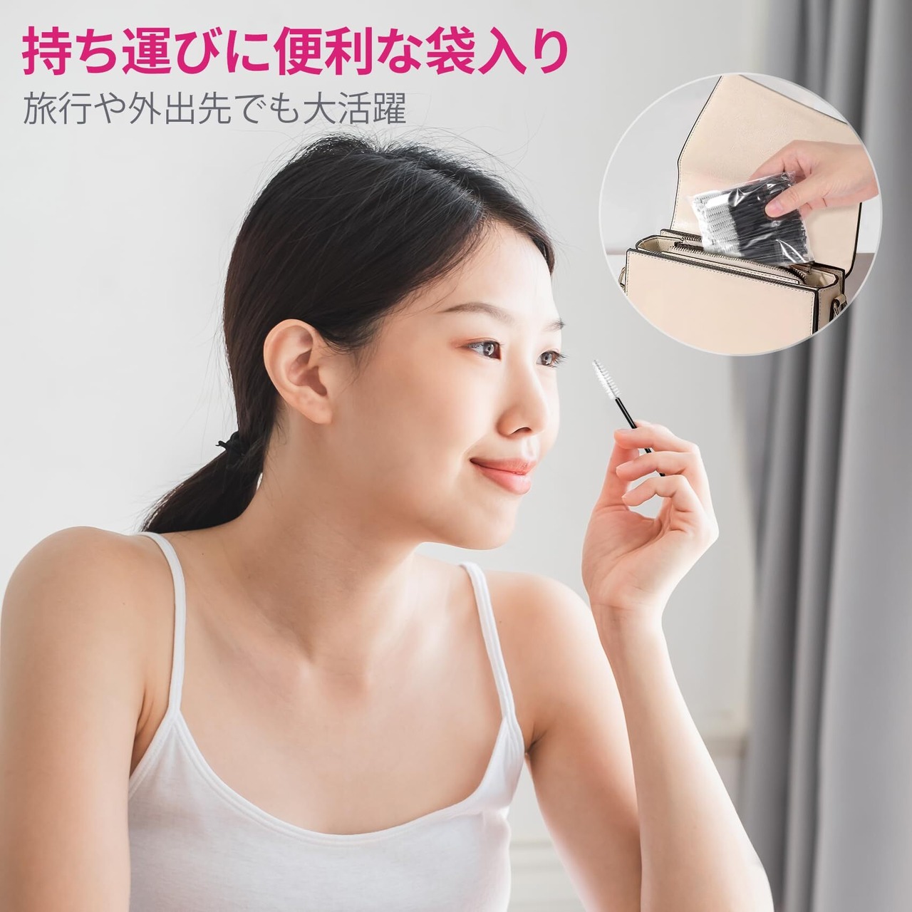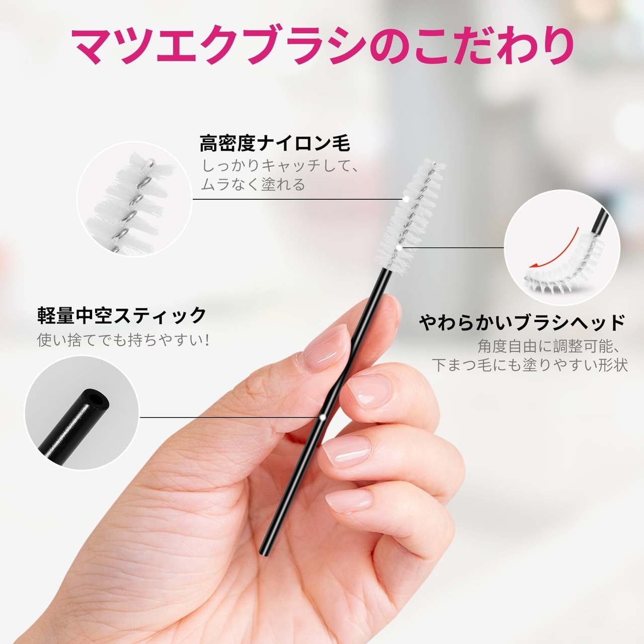 高品質素材:繊維毛を採用し、柔らかさと耐久性を両立した使い捨てまつ毛コームです。しっかり握れるプラスチック製ハンドルで、長時間の使用にも適しています