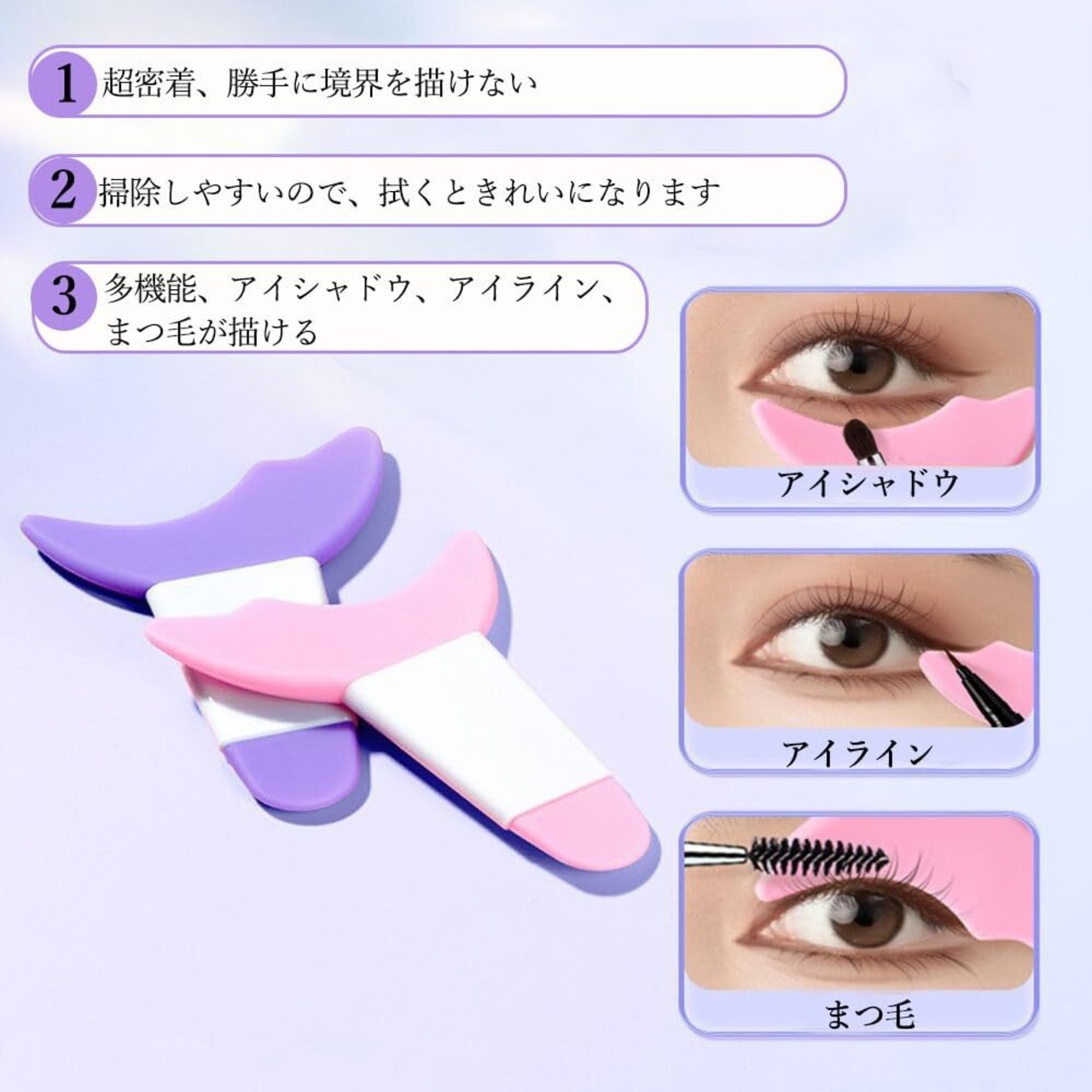 ISHR マスカラガード 2個セット アイライナーブラシ アイメイクエイド 多機能アイメイクアシスト アイメイクツール 補助パッド まつ毛パーマ セルフキット (パープル+ピンク)