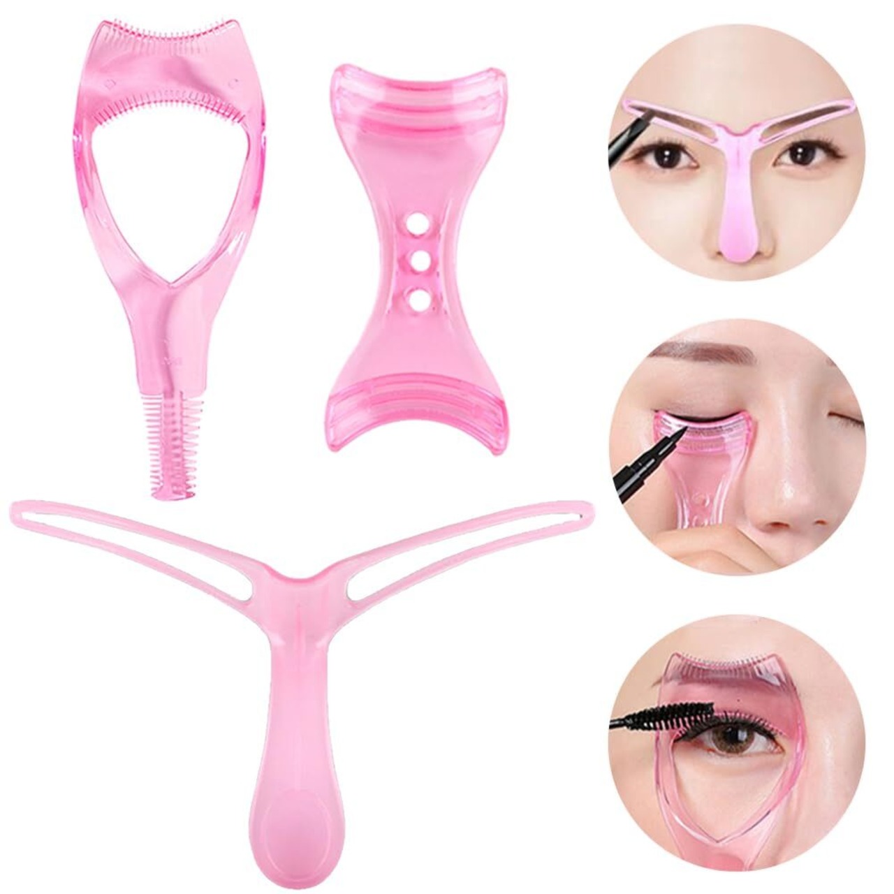 Forahome 眉毛テンプレート マスカラガード アイラッシュコーム 3種類セット まつ毛に合わせやすい 使いやすい まつ毛パーマツール まつげ補助ツール 自然なまつ毛の形を簡単にできる メイク道具 (ピンク)