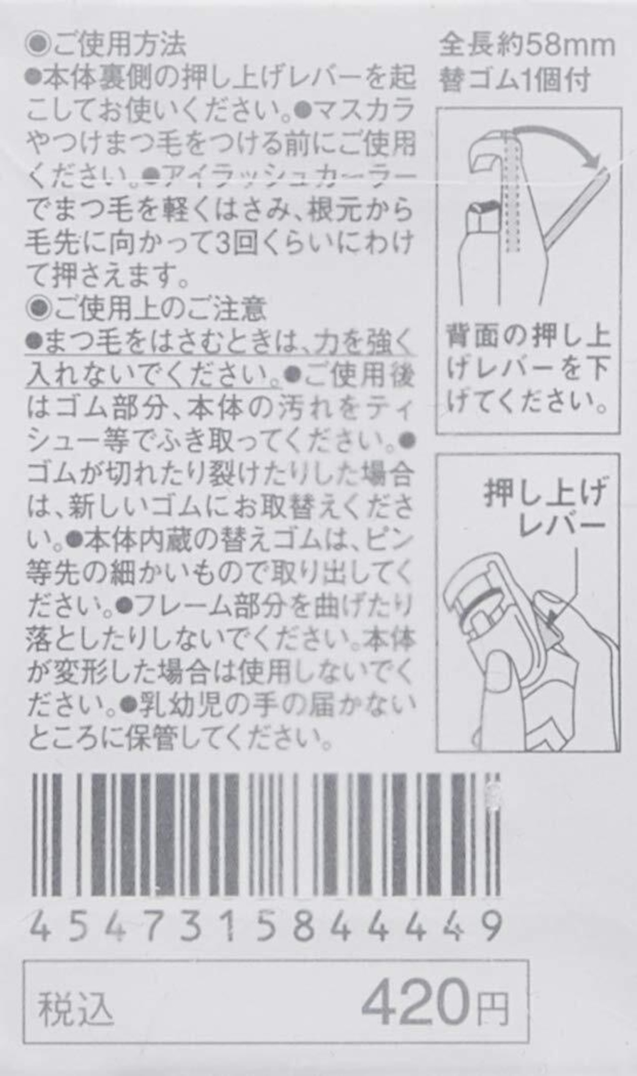 まつ毛をはさむときは、力を強く入れないでください。ご使用後はゴム部分、本体の汚れをティシュー等でふき取ってください。