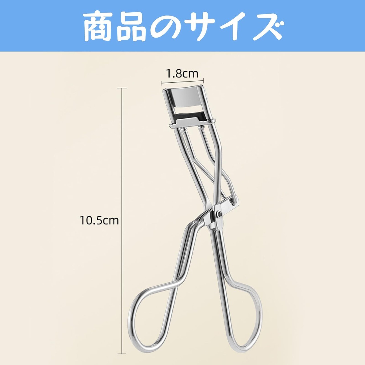 【商品のサイズ】長さ:10.5cm、幅:1.8cm。カーブ形状がまぶたにフィットし持ち上げることでまつげの根本からしっかり挟む。軽量でコンパクト、収納や持ち運びに便利、バッグに入れやすい、自宅、旅行、楽屋、美容院などに適しています。