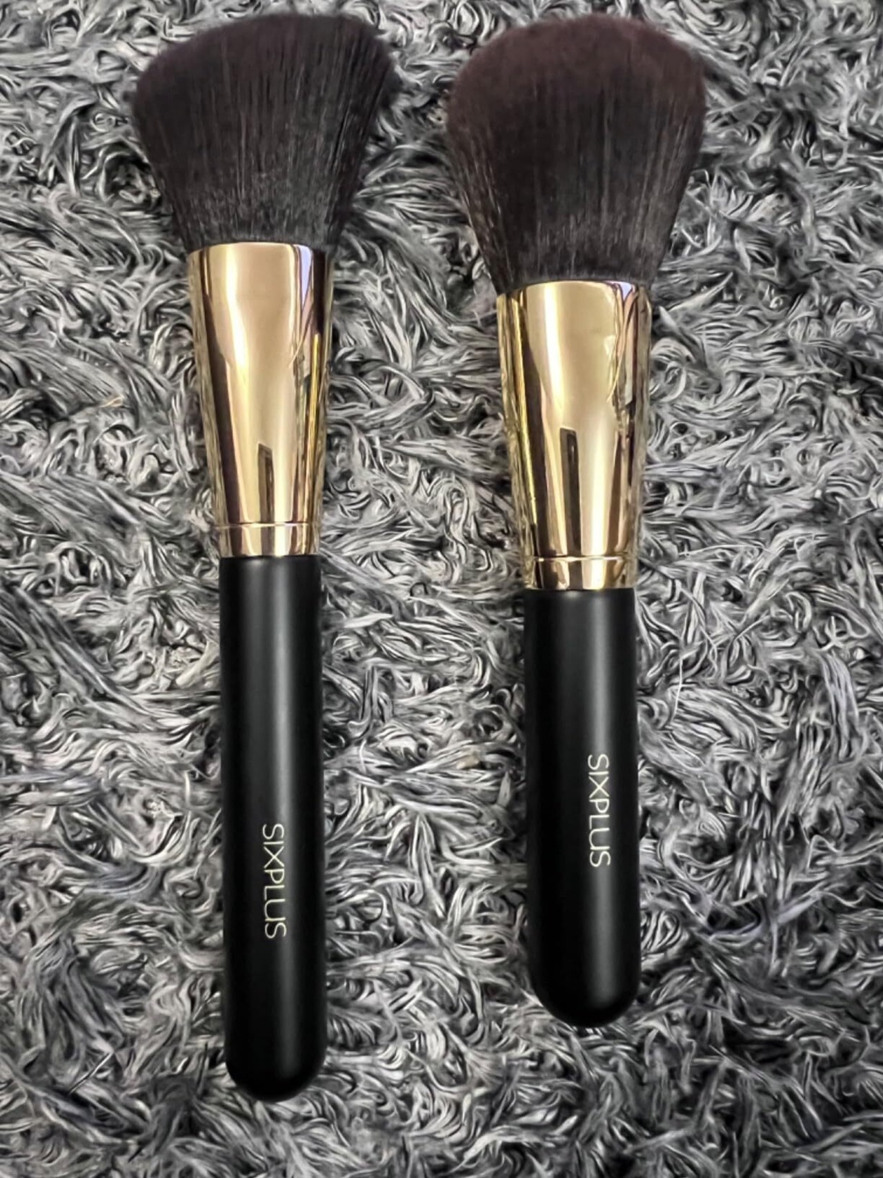 SIXPLUS シックスプラス HALO シリーズ メイクブラシセット ブラック&ゴールドスタイル 2本セット パウダーブラシ チークブラシ