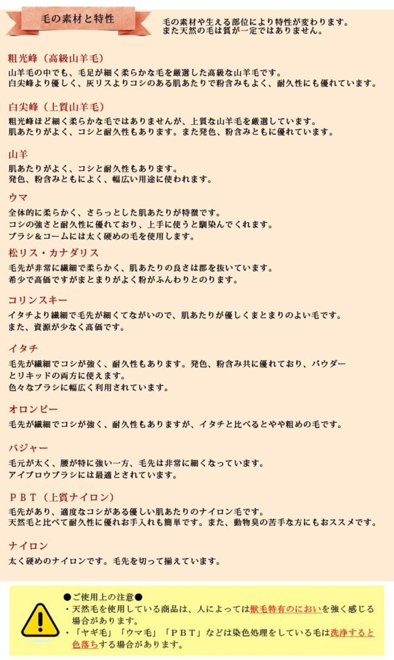 ●全体的に柔らかく、さらっとした肌あたりが特徴の馬毛は、コシの強さと耐久性にも優れている