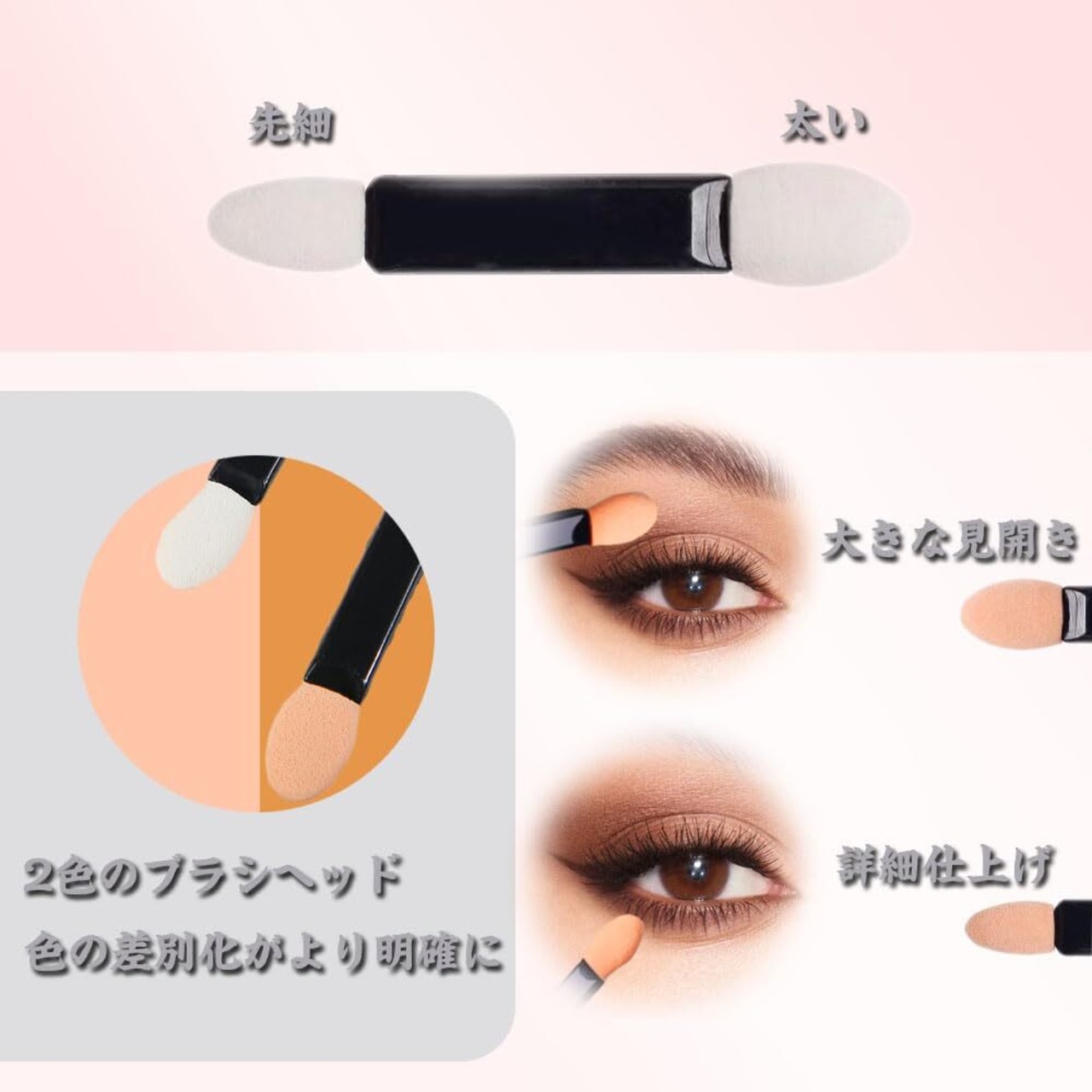 両頭タイプ:これは、異なるアイシャドーカラーを貼り付けることができる両面ブラシで設計されています。太いチップは幅広くつけるときに。細いチップは目のキワやラインを入れるときにお使いください、細かい部分のメイクにも活用可能なアイテムとなっております。